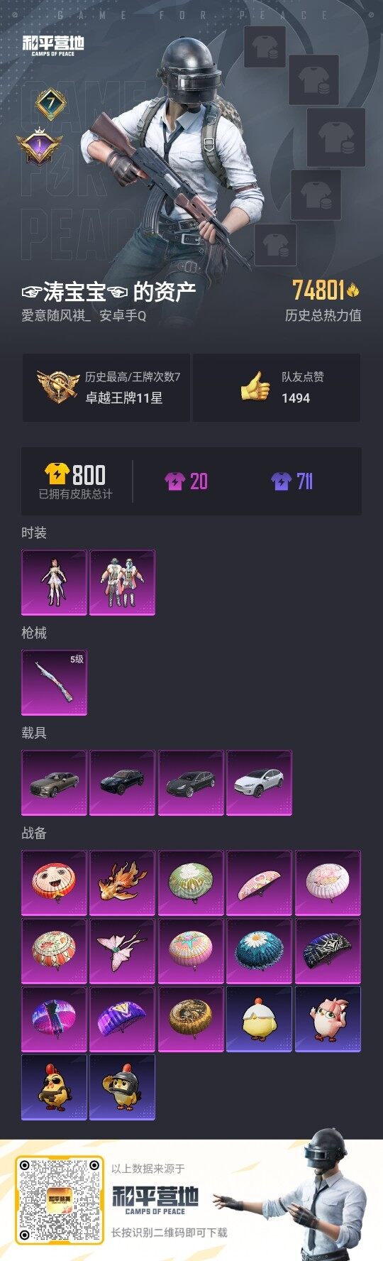 - PX_2102966- 苹果手Q-8王牌印记-有战神框-6粉装-4特效枪-1载具-44902热力值-82套装-136枪皮-1卓越印记-0传奇印记 【6粉装】,梦幻火箭,智耀战神,复仇流浪者,薄荷物语,圣堂之誓,紫电风暴 【4特效枪】AKM-星际浪客-6级 M416-五爪金龙-7级 Kar98K-巳巳如意-5级 Vector-环太平洋-7级 【4稀有紫装】,暗影哥特,胖达圆圆,龟仙人,怀庆长公主,