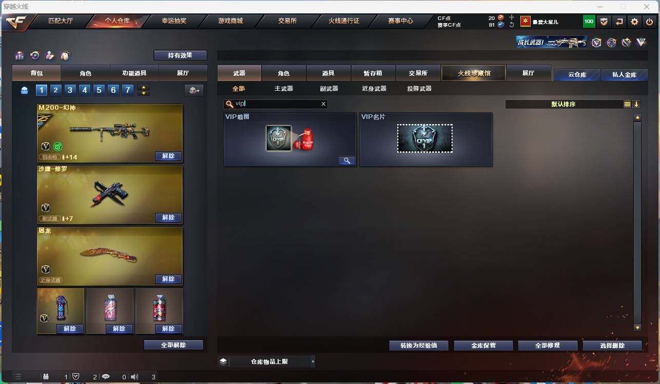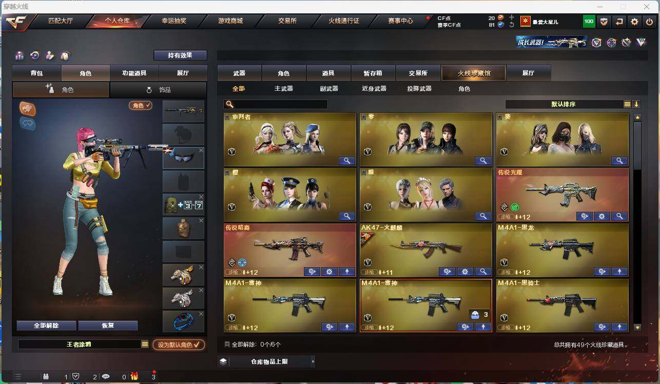- [11647721]可二次 可修改实名 排位资格:有 1王者武器 2炫金武器 29V武器 2V角色 9皮肤 可排位 传奇 武器:炫金火麒麟,G36C-幻影,擎天,王者之翼,AK47-无影,QBZ03-金色蔷薇,AK47-机械迷城,龙啸,高爆手雷-幻灵,屠龙,Barrett-毁灭,炫金天神,M4A1-雷神,RPK-盘龙,死亡之眼,Scar Light-白虎,AK47-火麒麟,M4A1-黑骑士,沙鹰-天神,M200-幻神,AWM-天龙,加特林-炼狱,雷神-葫芦兄弟,沙鹰-修罗,王者之势-觉醒版,麒麟刺,汤姆逊-烈龙