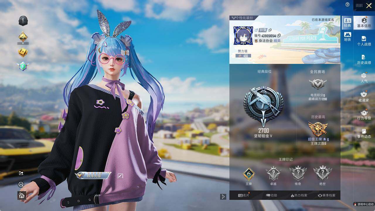 - PX_2100933-??/枪械4/装备164/载具1/战备83/王牌印记8/热力值44999/七级AKM-炫紫旋律/五级AUG-暖羊咩咩/五级Kar98K-巳巳如意/五级Mk14-甜梦熊击/特斯拉3银色/深海曼妙/金属狂野/智能音符/粉装-星穹咏叹调/角色-拉斐尔/套装-燕燕于飞/套装-鱼渊荷华/套装-晶辉守护/套装-粉恋花/套装-紫幽梦/套装-蓝冰羽/套装-星影赞美诗/套装-虚空漩涡/套装-极