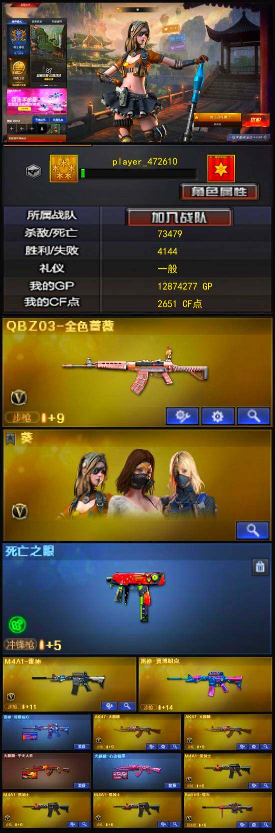 【英雄级武器】:QBZ03-金色蔷薇,M4A1-雷神,M4A1-玫瑰精灵,M4A1-黑骑士*3,M4A1-死神,AK47-火麒麟*2,AK47-黑武士,AWM-天龙,Barrett-毁灭,黑骑士-海王,沙鹰-修罗,屠龙
