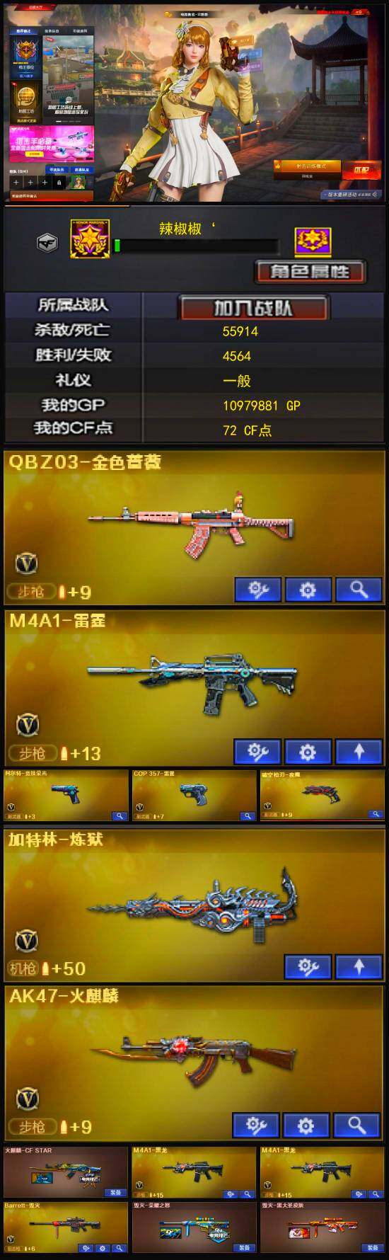 【热门武器】:QBZ03-金色蔷薇,加特林-炼狱,沙鹰-修罗*3