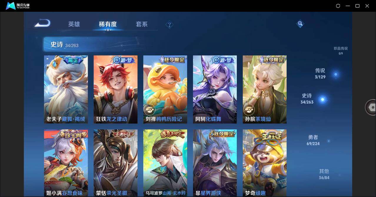 【史诗皮肤】:赵云皇家上将,赵云未来纪元,老夫子圣诞老人,甄姬冰雪圆舞曲,王昭君偶像歌手,廉颇地狱岩魂,宫本武藏鬼剑武藏,妲己魅力维加斯,墨子龙骑士,墨子金属风暴,曹操幽灵船长,李白千年之狐,吕布末日机甲,安琪拉心灵骇客,铠曙光守护者,李元芳逐浪之夏,程咬金功夫厨神,伽罗箭羽风息,狄仁杰鹰眼统帅,裴擒虎李小龙,钟馗乐园奇幻夜,雅典娜黎明之约,鬼谷子五谷丰年,元歌无心,梦奇顽趣,暃星界游侠,马可波罗山海玄木吟,蒙恬荣光圣徽,姬小满妄想食味,孙膑茶境仙,阿轲化蝶舞,刘禅鸭鸭历险记,狂铁龙之律动,老夫子藏狐褐绒