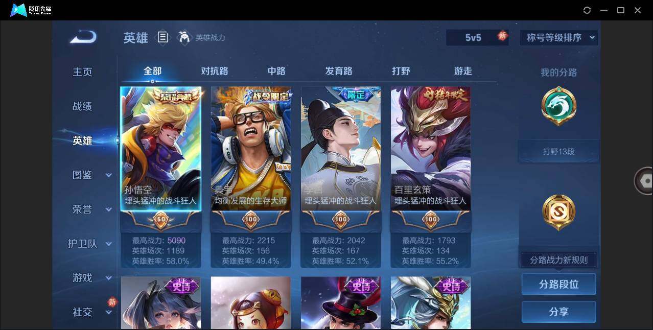[12626840]安卓Q-V7-永恒钻石IV段位-125英雄-213皮肤-1典藏-2传说-56史诗