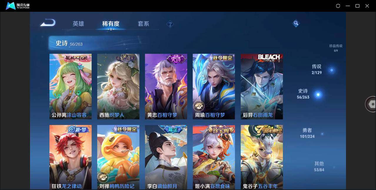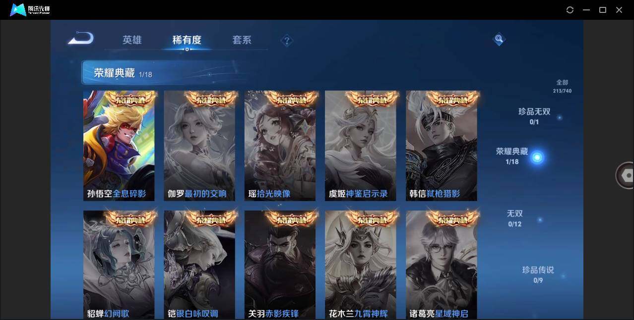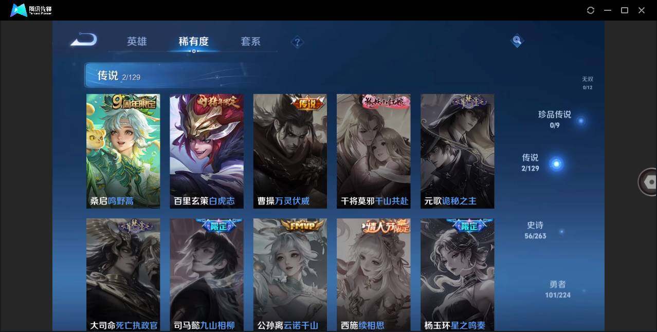 - [12165636]V7 11传说 123英雄 218皮肤 可修改实名 优质装备:黄金射手座,猫影幻舞,云霓雀翎,胖达荣荣,淬星耀世,碎云,山海·炽霜斩(李信年限) 珍宝阁皮:万物之道,玩趣恶龙 限定皮:鸣野蒿,异界灵契(白毛香),高山流水,齐天大圣,怒海麟威,游园惊梦,梁祝,李小龙,朱雀志(守约年限),孙行者,猪悟能,引擎之心,寅虎·御盾(廉颇年限),百木心枪 史诗皮:芈月浮光幕影,苍穹之光,电玩小子(小书包),特工魅影,千年之狐,魅语,百解令(蒙犽),无限星赏官,冰冠公主,晚萤,暗夜猫娘,末日机甲-吕布,猫狗日记-孙策,猫狗日记-大乔,节奏热浪,修罗,女仆咖啡,摇滚巨星,水果甜心,星夜王子,心灵骇客,时之奇旅-安琪拉,功夫厨神,暗隐猎兽者,鬼剑武藏,心灵战警,地狱岩魂,繁星吟游(呼啦呼啦),拒霜思,缤纷独角兽,乘风破浪,逐浪之夏,水晶猎龙者,曙光守护者,金属风暴,圣诞恋歌,鹰眼统帅,暗夜贵公子,魅力维加斯,雪上飞焰,寅虎·御盾,无心,未来纪元-赵云