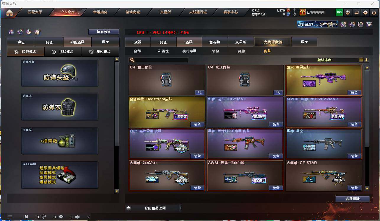 【稀有皮肤】:M200-幻神-黄忠皮肤,幻神-宠儿-2021MVP,M200-幻神-N9-2022MVP,白虎-巅峰荣耀 皮肤,雷神-荣耀之魄,雷神-星空,雷神-冠军之魄,火麒麟-冠军之心,毁灭-荣耀之怒,AWM-天龙-传奇白鲨