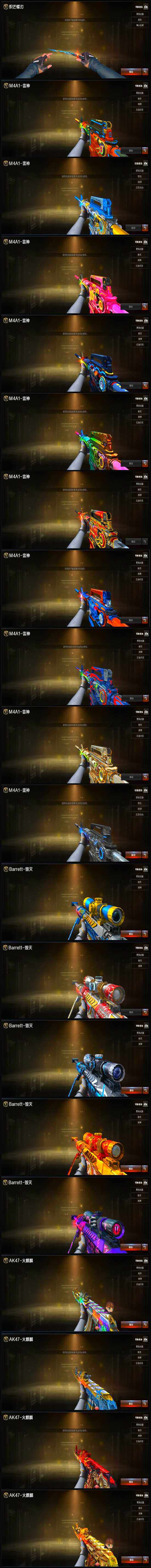 【王者炫金武器】:炫金骑士,炫金天龙,炫金毁灭*2,炫金雷神,炫金超新星,炼狱-悦蓝,王者之力,王者之心,Barrett-雷霆王者,王者青龙,王者凤吟,王者之霆,王者之刺,雷霆王者之锋*2,王者玉锋