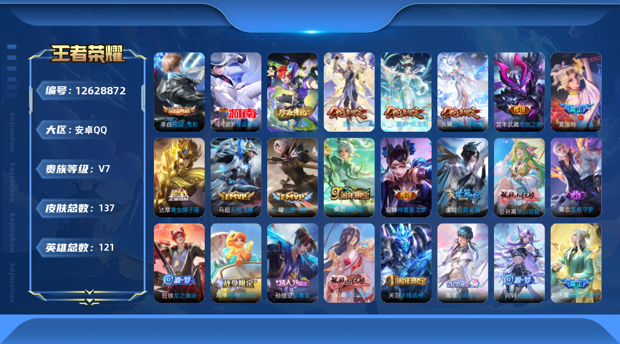 [12628872]安卓Q-V7-永恒钻石IV段位-121英雄-137皮肤-1典藏-0珍品无双-0无双-2珍品传说-11传说-46史诗