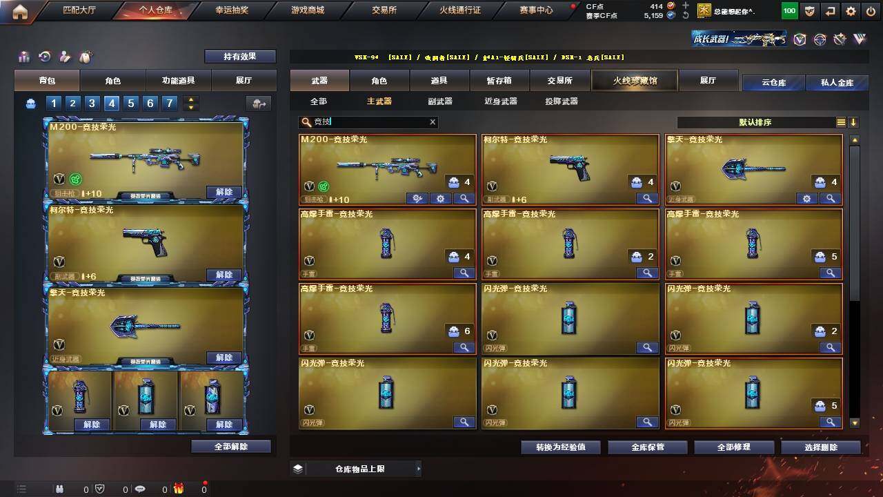 【英雄级武器】:QBZ03-云龙,COP 357-云龙*2,USP-雷暴,斩神刀-雷暴,QBZ03-金色蔷薇,Scar Light-白虎,金色蔷薇-古蛇迷踪,M4A1-雷神*2,M4A1-玫瑰精灵*2,M4A1-黑骑士*2,AK47-火麒麟,Barrett-毁灭,AA-12-雷霆,QBZ03-天罚,M200-幻神,VSK-94-金蚀,黑武士-锦绣游龙,超新星-热带奇洋,修罗-古蛇迷踪,沙鹰-天神,沙鹰-修罗,炽芒蝶刃*2,屠龙*2,龙啸-热带奇洋