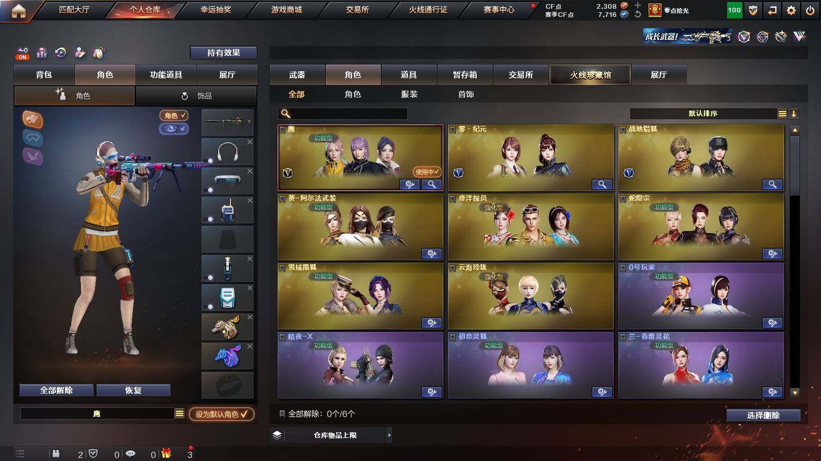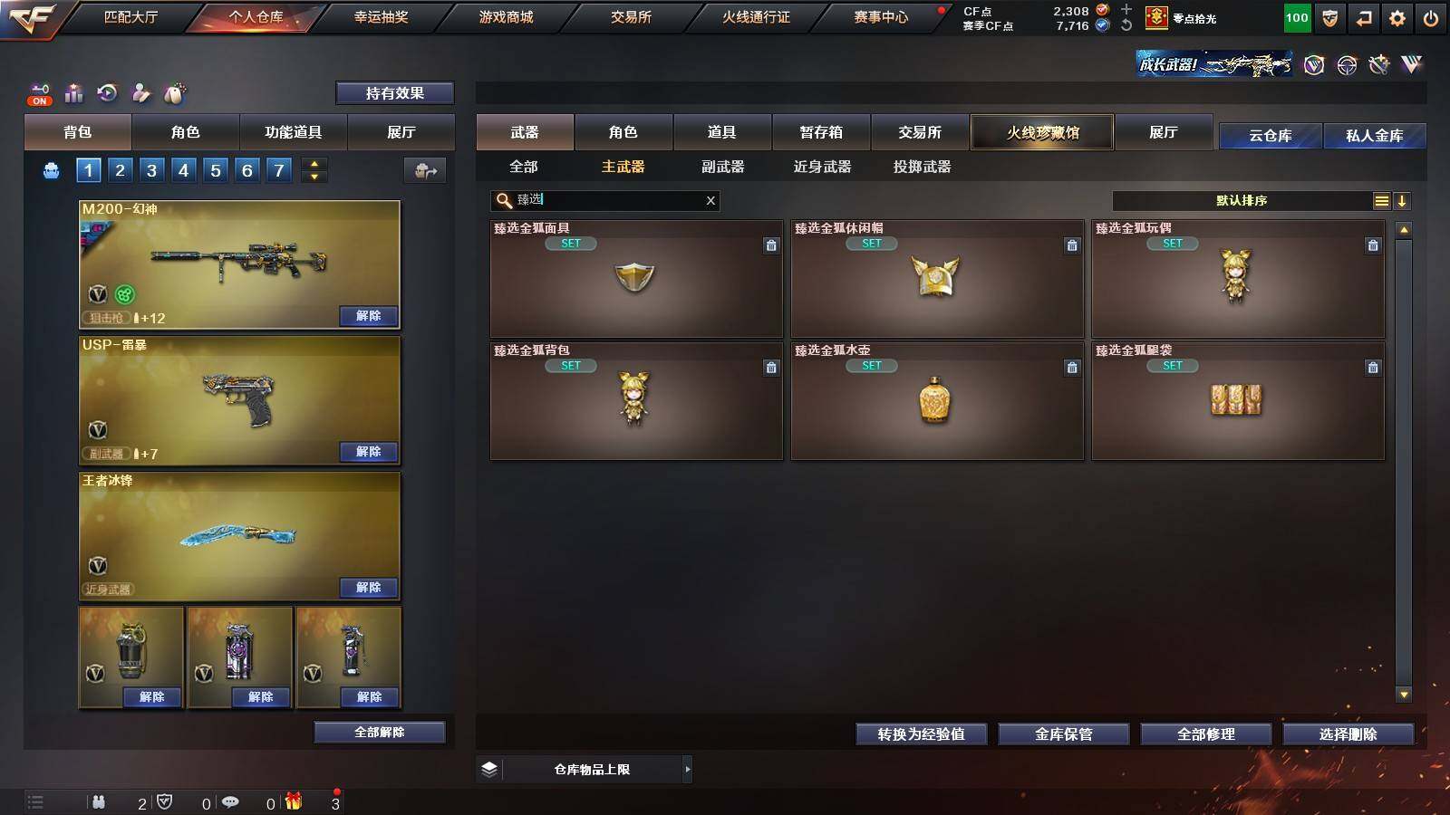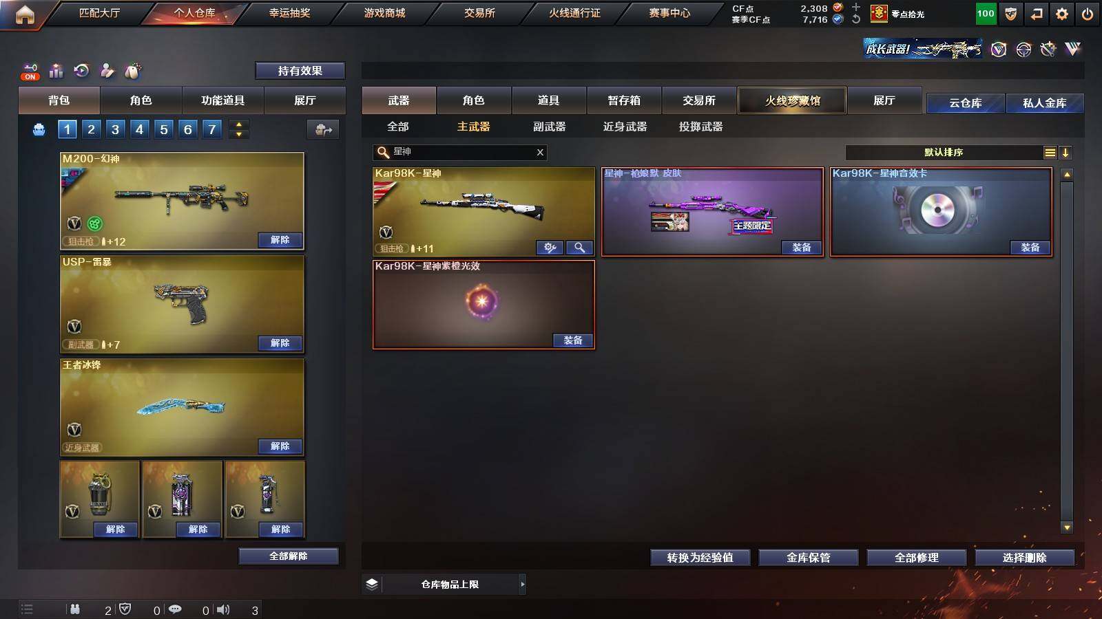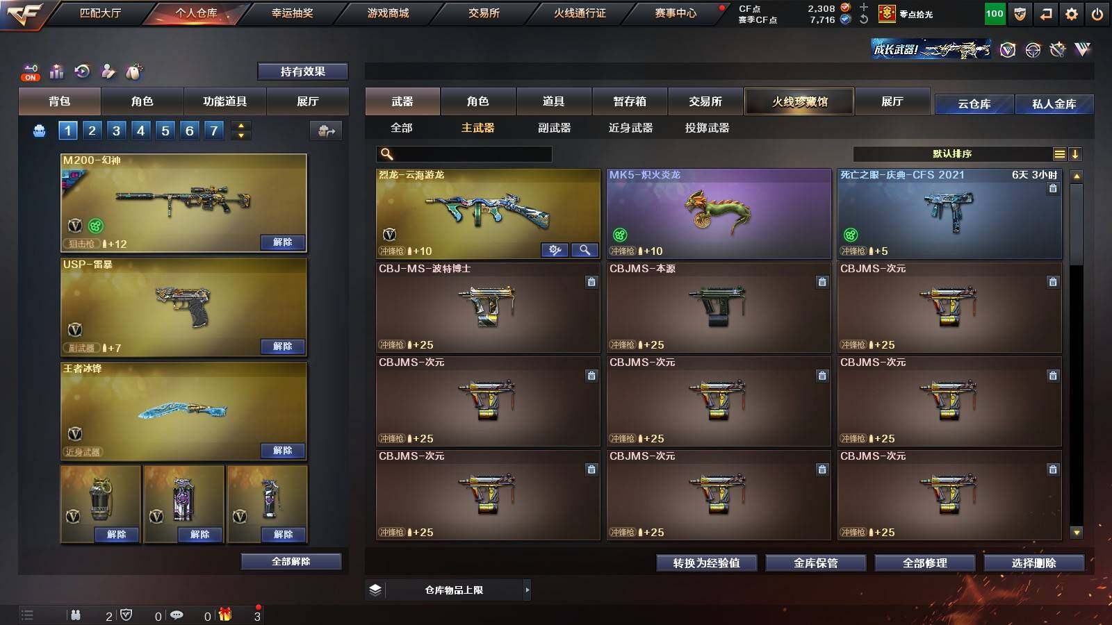 【英雄级武器】:柯尔特-竞技荣光,擎天-竞技荣光,高爆手雷-竞技荣光*2,烟雾弹-竞技荣光,闪光弹-竞技荣光,USP-雷暴,FAMAS G2-天戎,G36C-幻影,QBZ03-金色蔷薇,M4A1-青龙,金色蔷薇-古蛇迷踪,无影-神兵利器,M4A1-雷神,M4A1-黑骑士,AK47-火麒麟,AWM-裁决,QBZ03-天罚,Kar98K-星神,M200-幻神,黑武士-锦绣游龙,超新星-热带奇洋,死神-雪域霜狐,M4A1-赤狱骑士,修罗-古蛇迷踪,沙鹰-天神,沙鹰-修罗,炽芒蝶刃,擎天,擎天-云海游龙,龙啸-热带奇洋