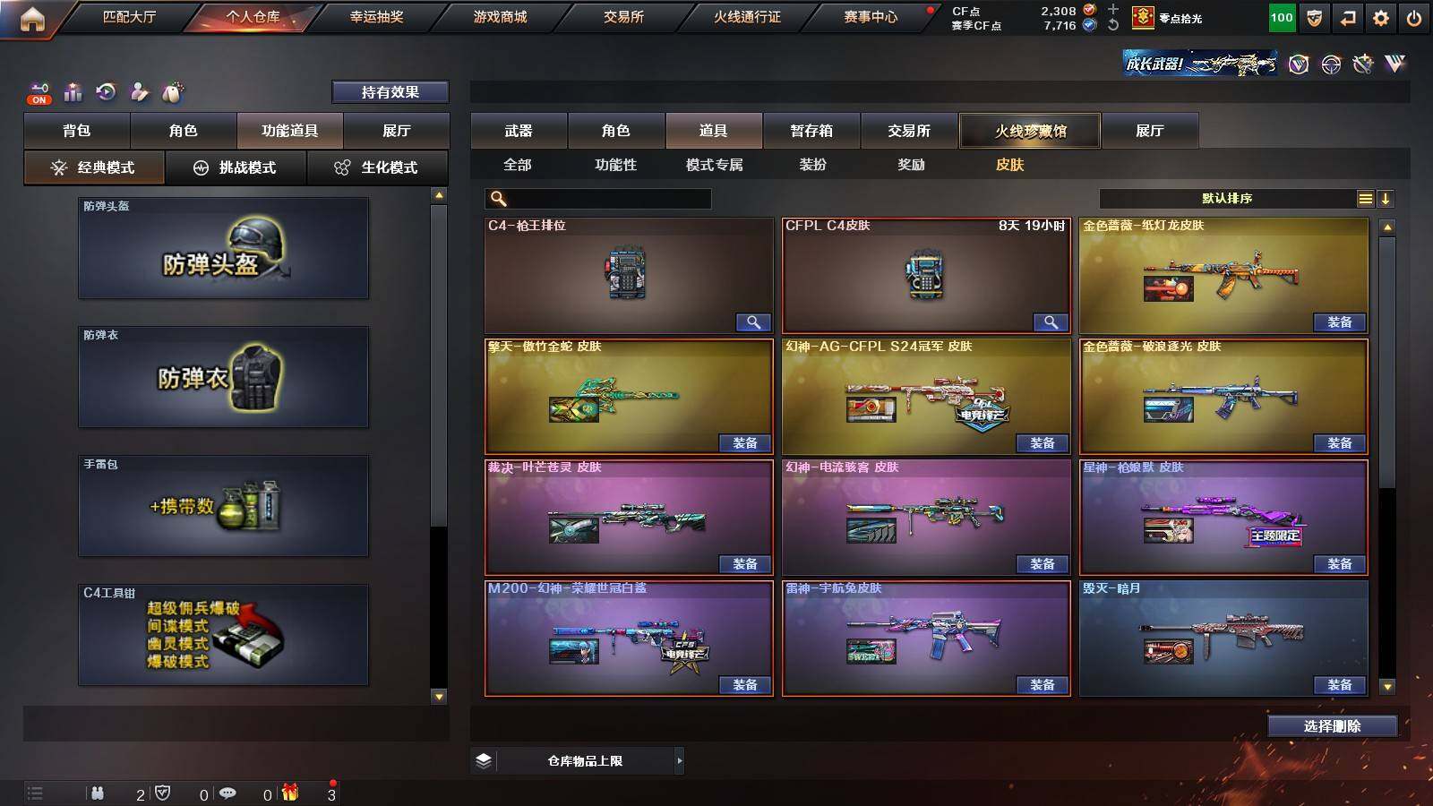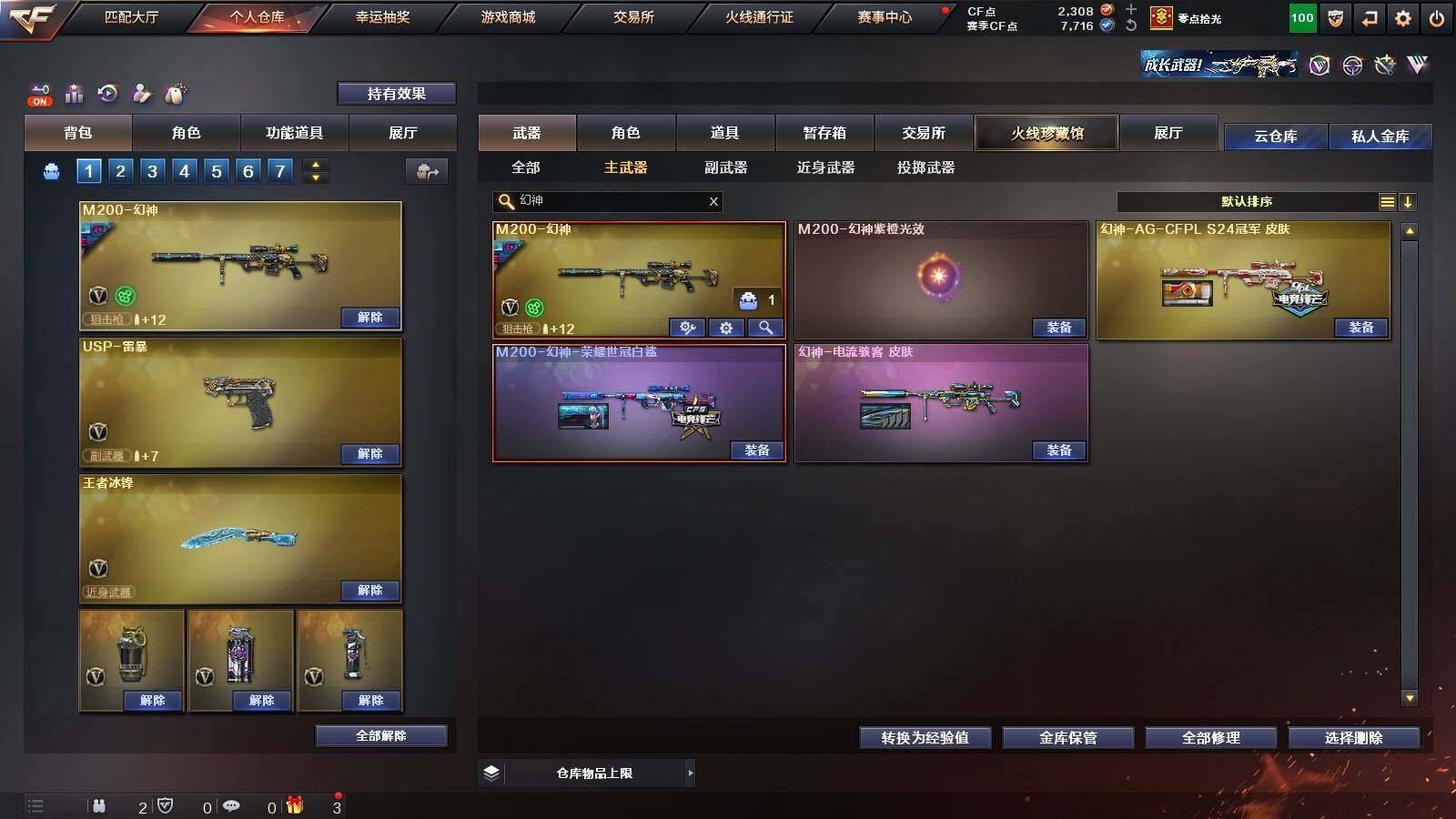 【稀有皮肤】:M200-幻神-荣耀世冠白鲨,幻神-电流骇客 皮肤,幻神-AG-CFPL S24冠军 皮肤,星神-枪娘默 皮肤,金色蔷薇-破浪逐光 皮肤,火麒麟-平天大圣,火麒麟-心动糖果,毁灭-暗月,毁灭-黑大圣皮肤