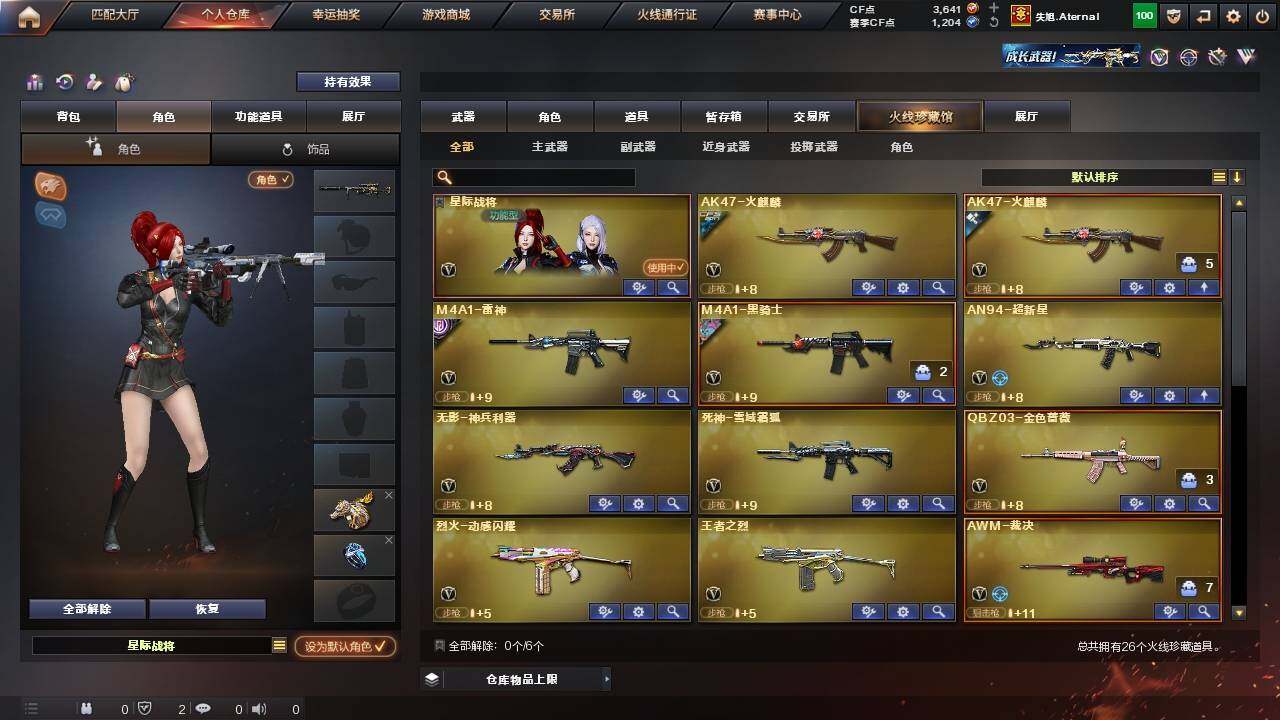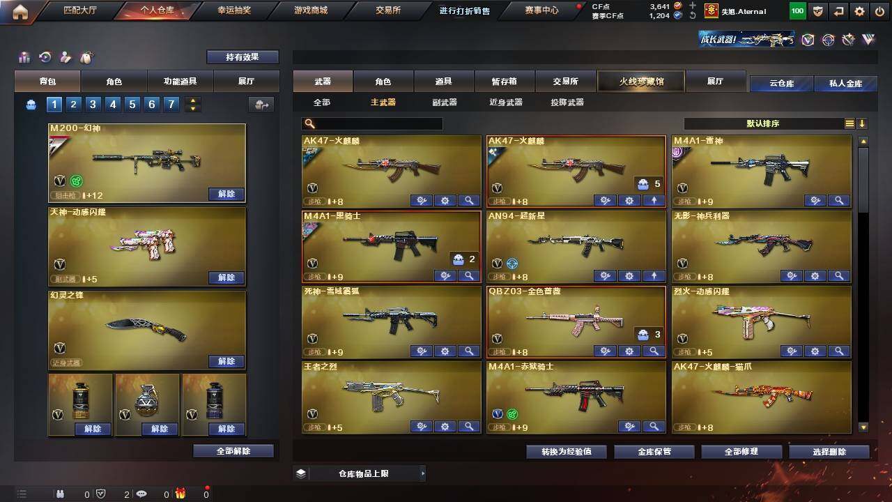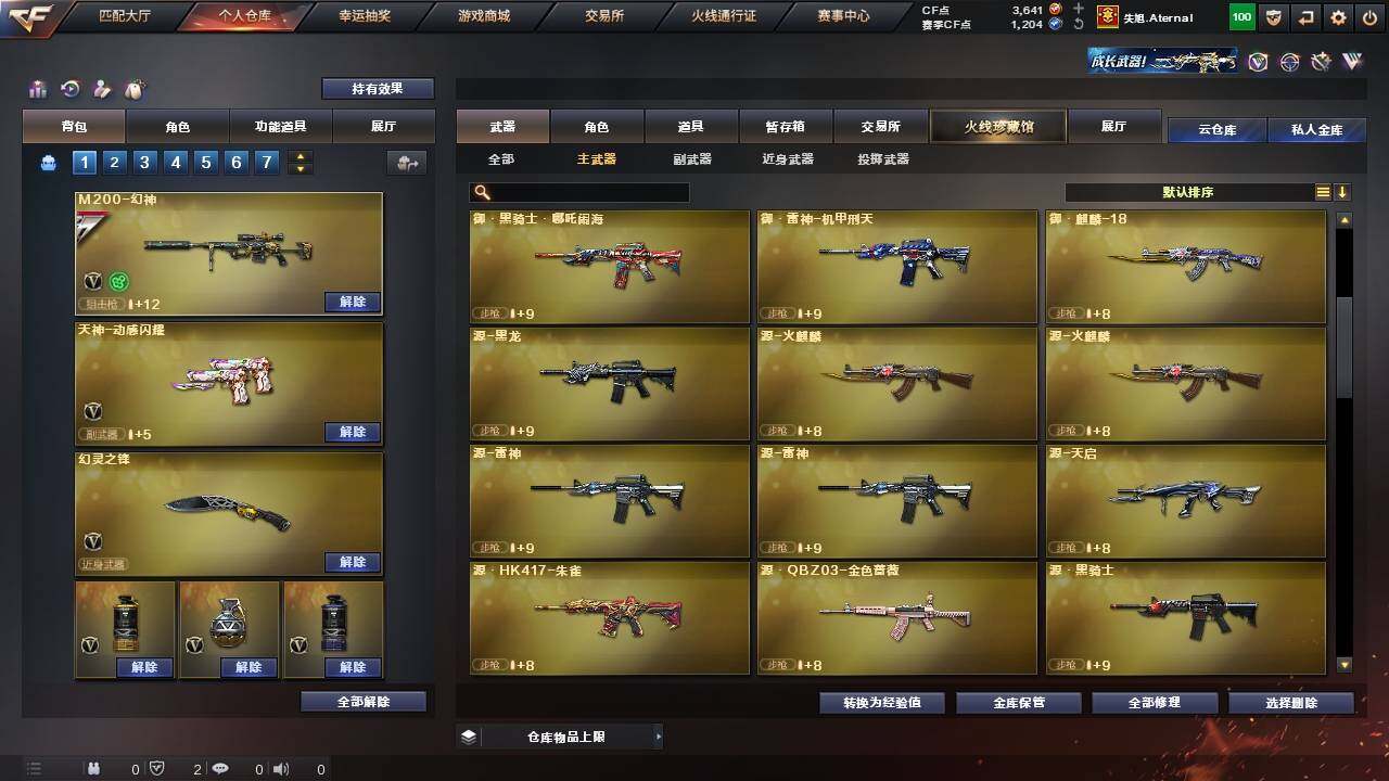 【英雄级武器】:幻灵之锋,烈火-动感闪耀,天神-动感闪耀,屠龙-动感闪耀,手雷-动感闪耀,QBZ03-金色蔷薇,无影-神兵利器,M4A1-雷神,M4A1-黑骑士,AK47-火麒麟*2,AN94-超新星,AWM-裁决,Kar98K-星神,M200-幻神,死神-雪域霜狐,沙鹰-修罗,麒麟刺