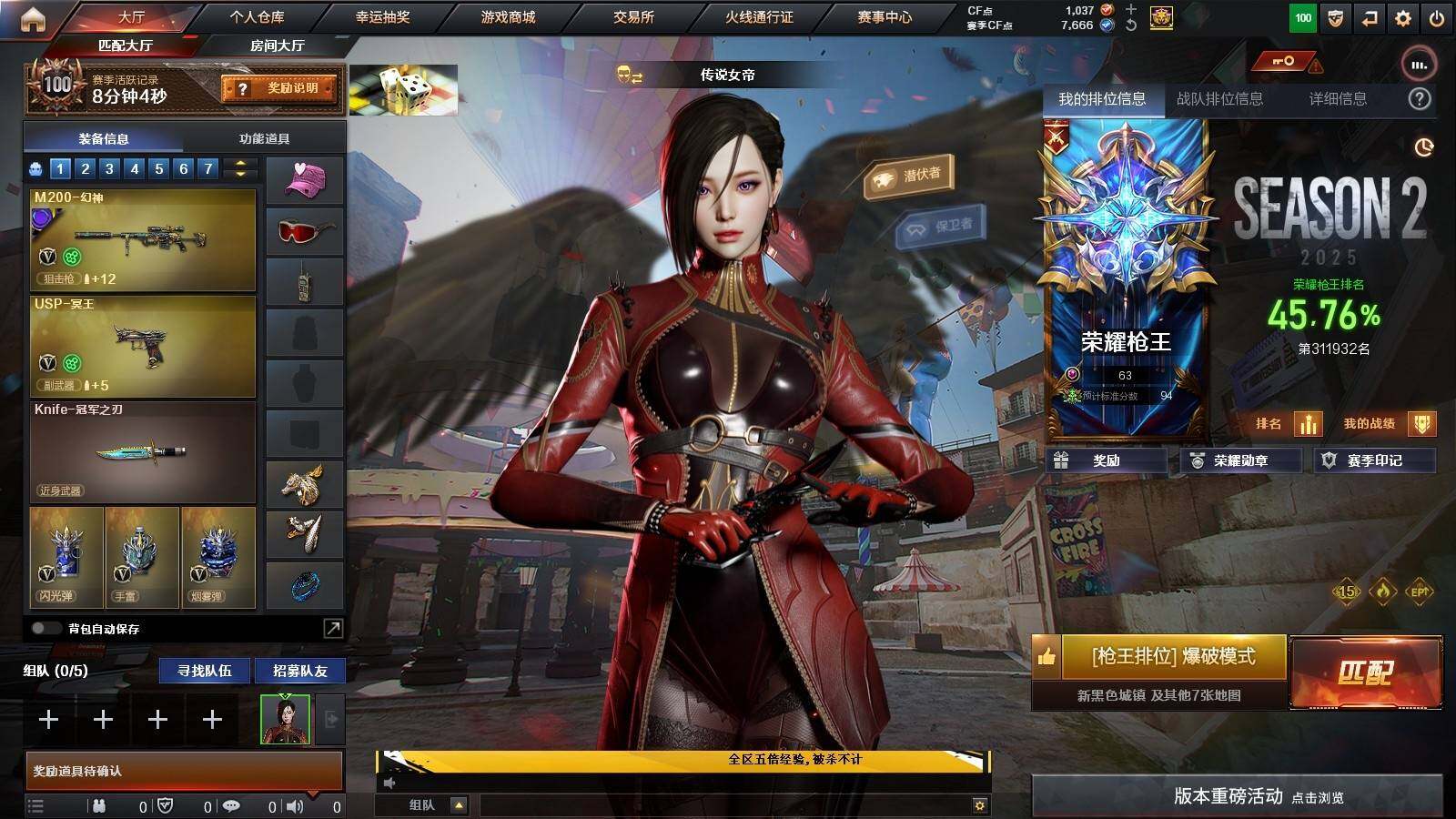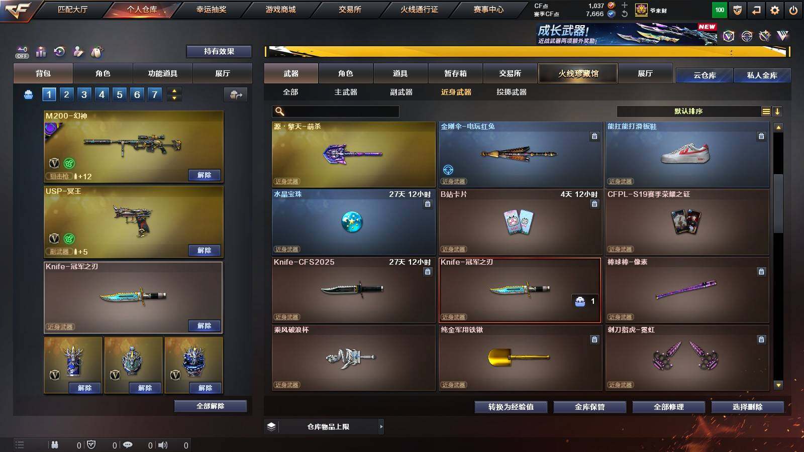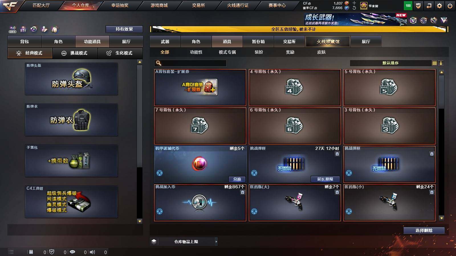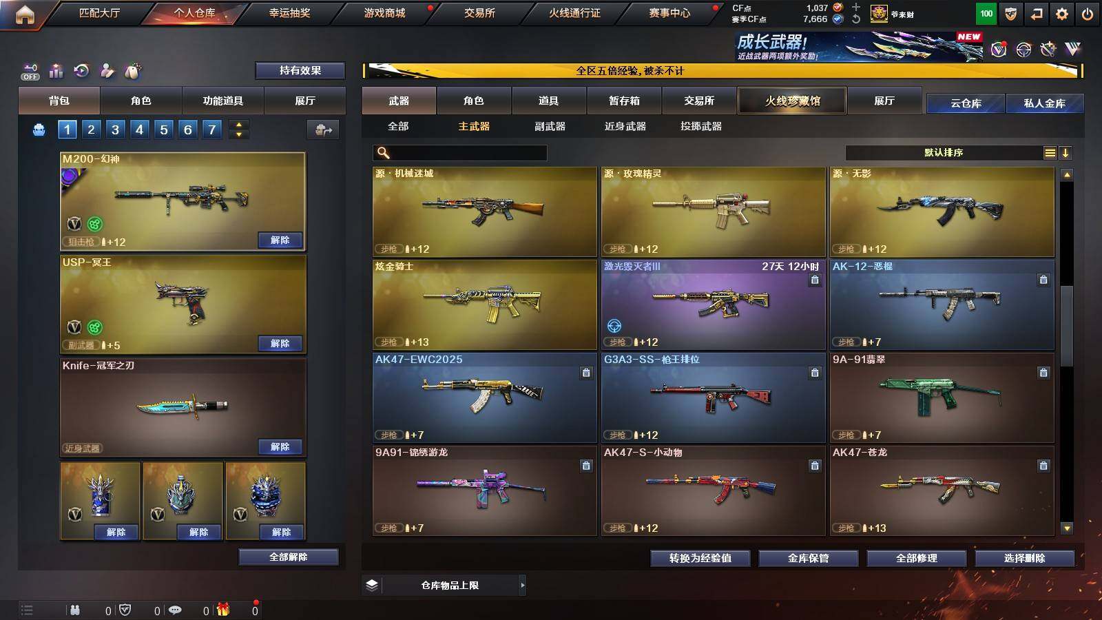【热门武器】:QBZ03-金色蔷薇,M200-幻神,白虎-电玩蓝兔,Cat-刀锋,M4A1-黑骑士,汤姆逊-烈龙*6,斯泰尔-蝴蝶,MK5-炽火炎龙,沙鹰-修罗*4,Knife-冠军之刃