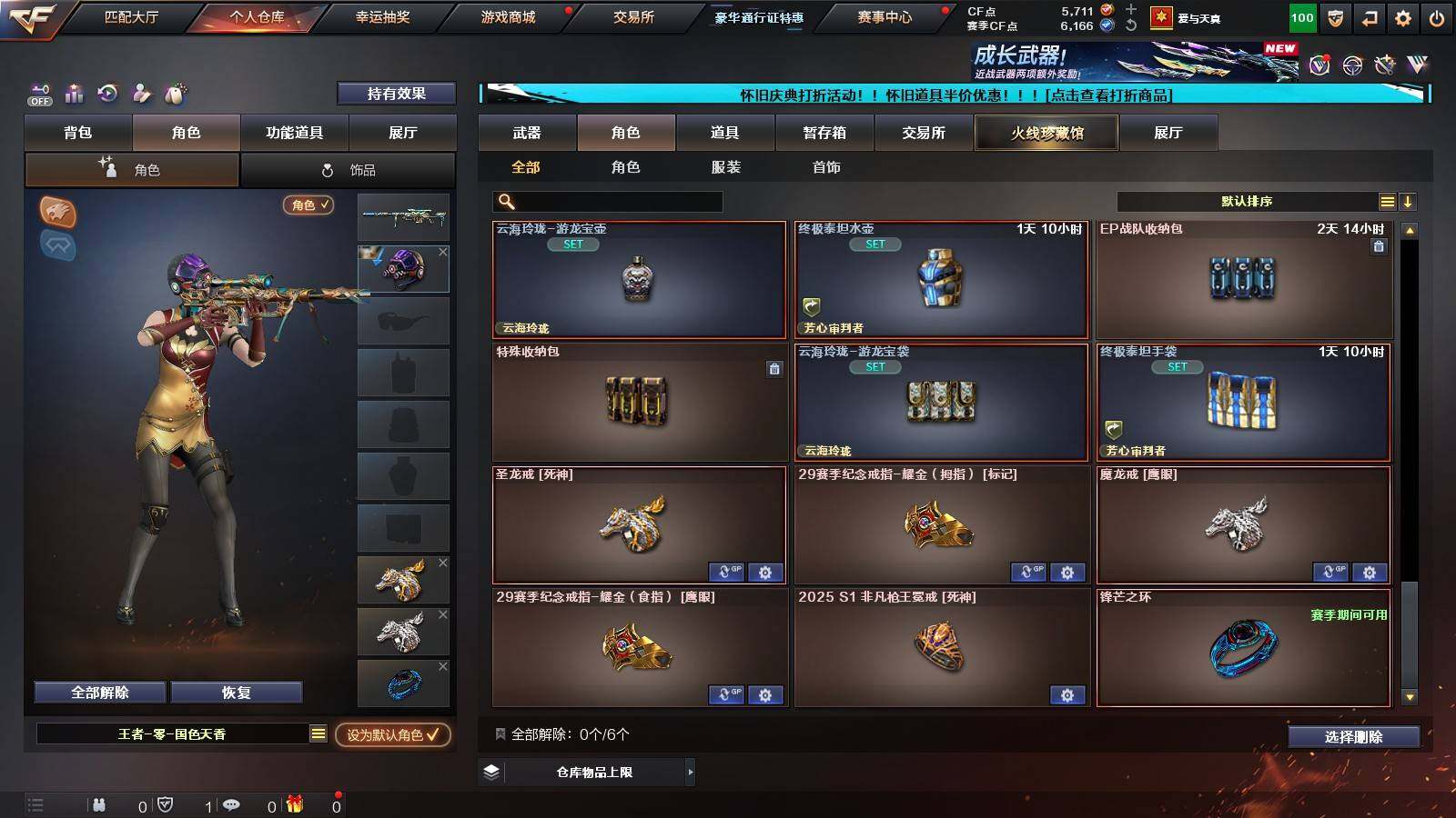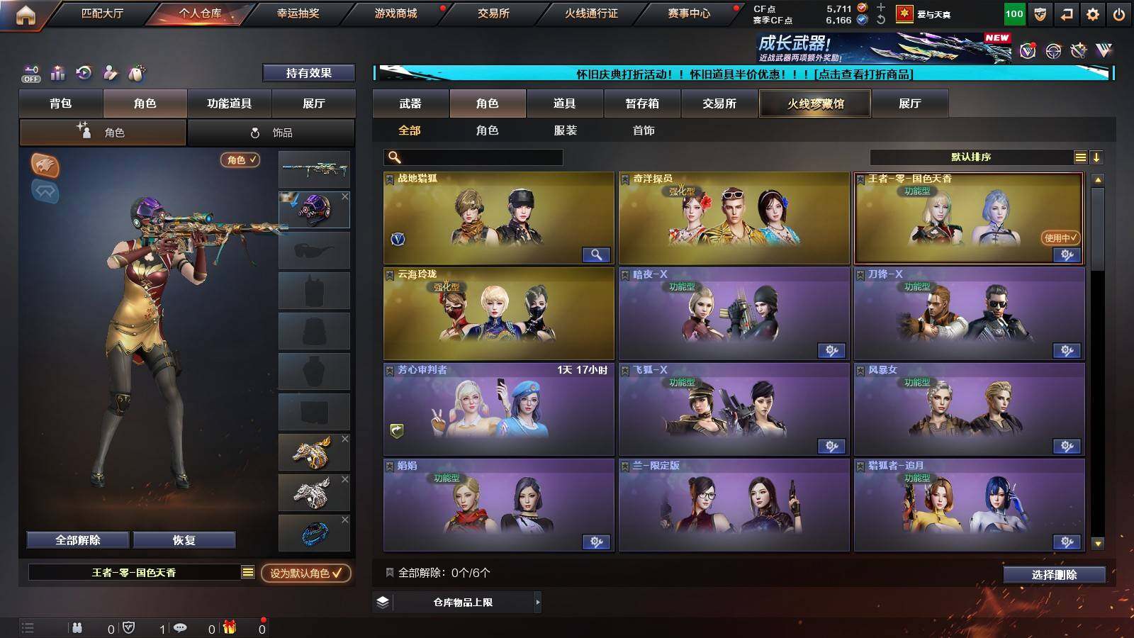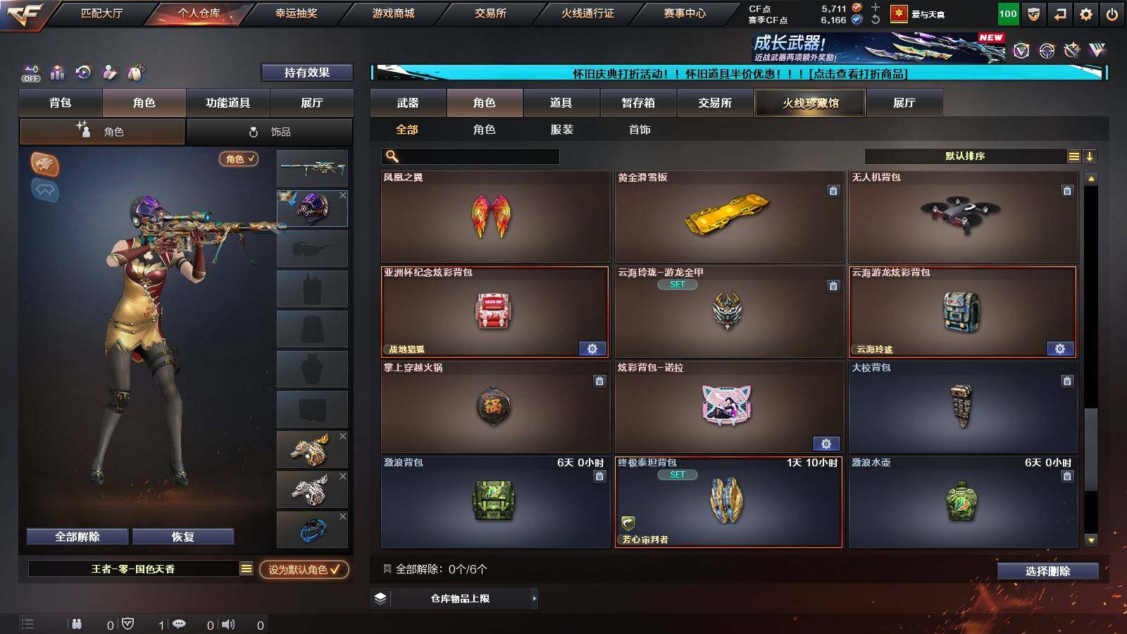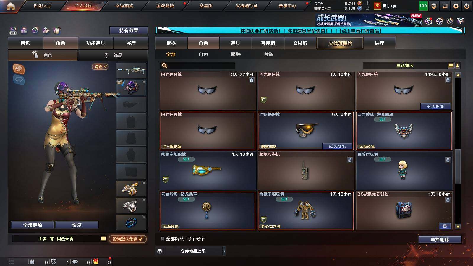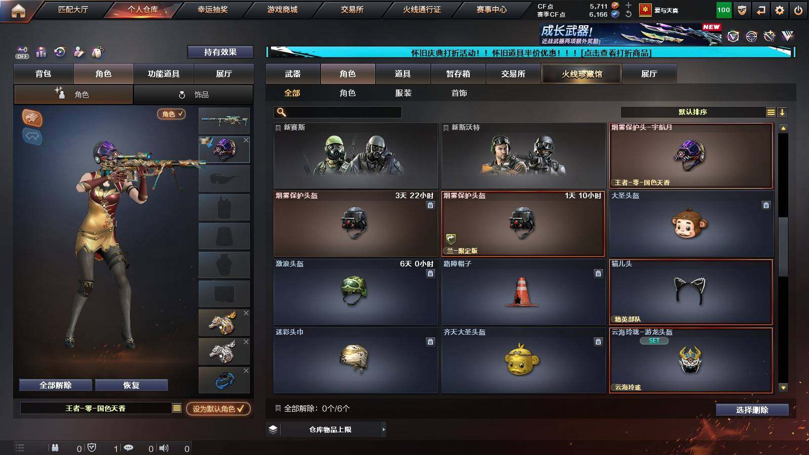 - [11527721]V6 8传说 123英雄 154皮肤 可修改实名 优质装备:地狱火,零号·赤焰,游龙清影(小青龙),超时空战士-狄仁杰 传说皮:幻光神枪 珍宝阁皮:万物之道 限定皮:愿照·千秋盛(女娲年限),至尊宝,凤求凰(白切鸡),太华(伽罗年限),傲雪梅枪,时之彼端,飞衡(韩信年限),梁祝,烈魂,岱宗(典韦年限),李小龙 史诗皮:龙之律动,茶境仙,怒海争锋,百相守梦-黄忠,紫霞仙子,黄金分割率,永昼,乱世虎臣,修罗,水果甜心,功夫厨神,鬼剑武藏,心灵战警,纤云弄巧,繁星吟游(呼啦呼啦),水晶猎龙者,鹰眼统帅,王者之锤,魅力维加斯,赏金猎手
