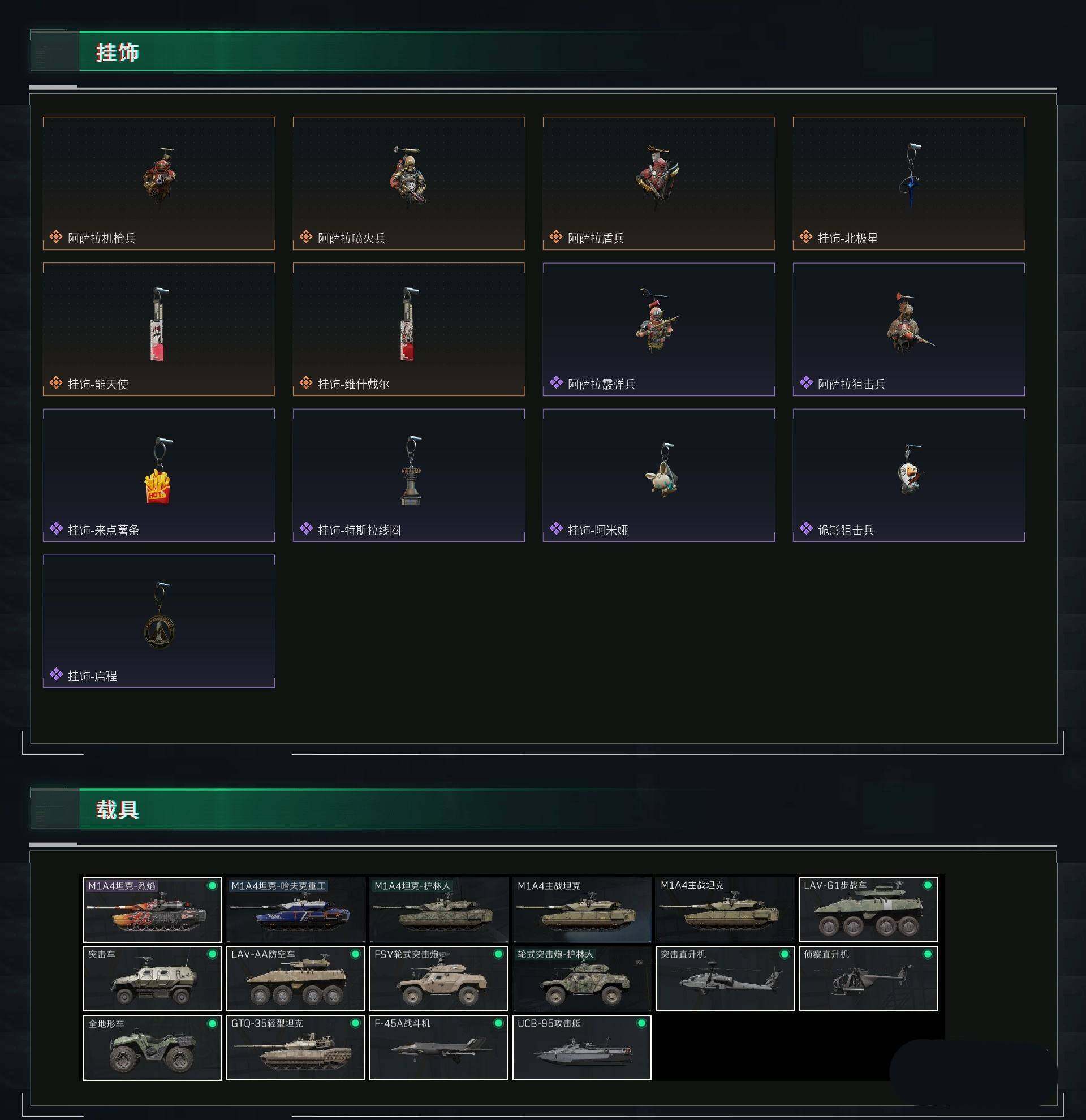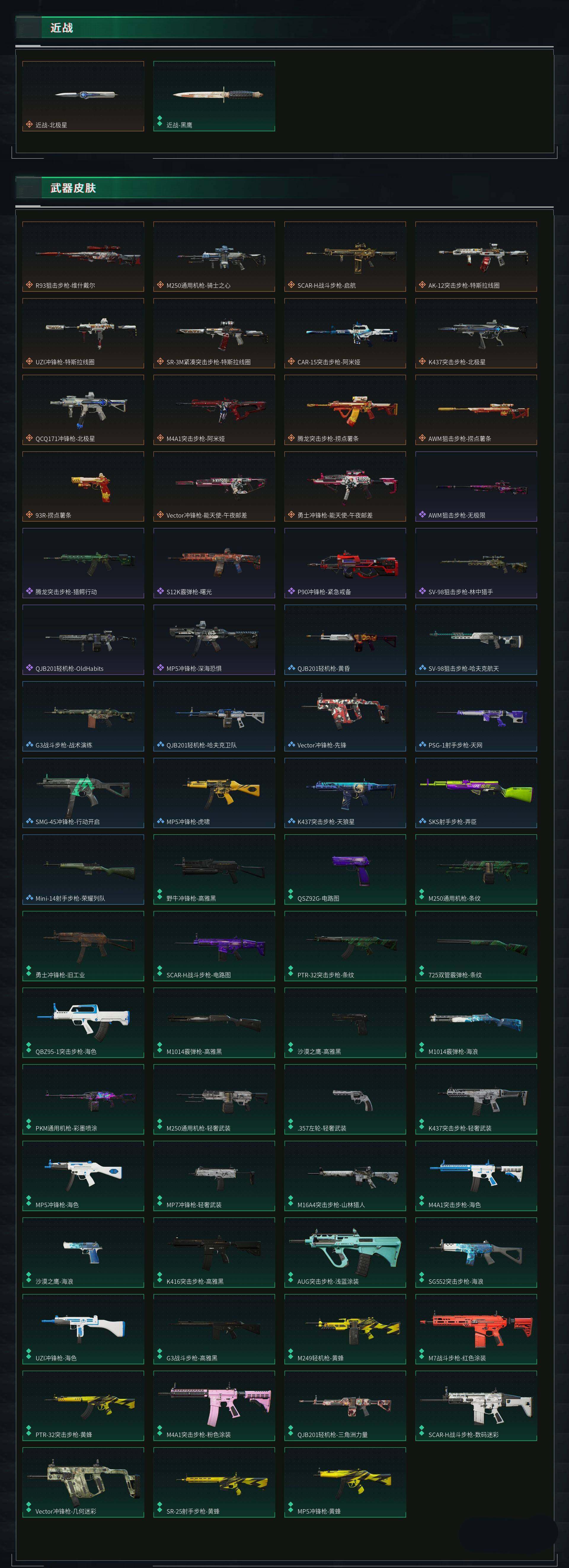 - PX_2077731-时装数: 34 载具数: 1 枪械数: 70 战备数: 53 载具: 合金龙骨(绿) 稀有枪皮: M416风花雪月