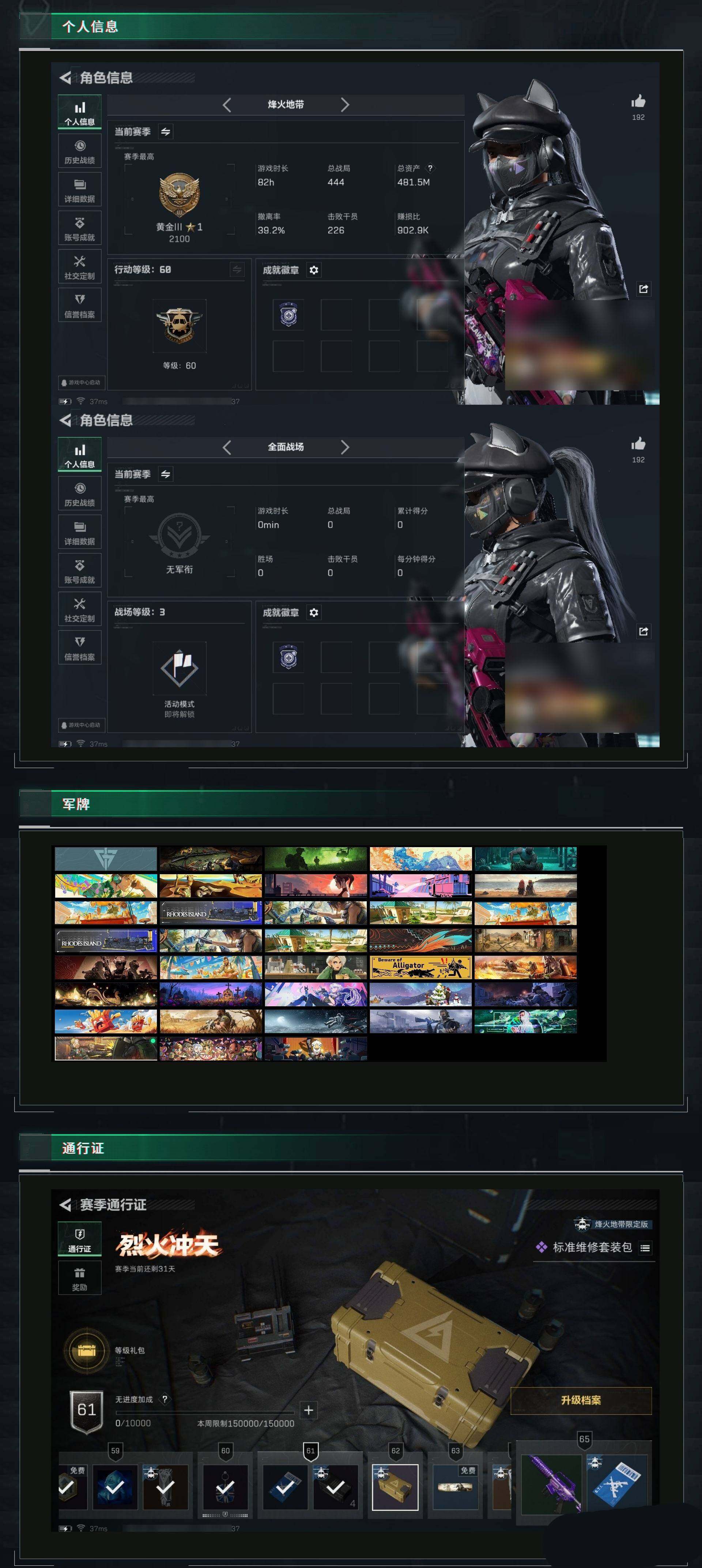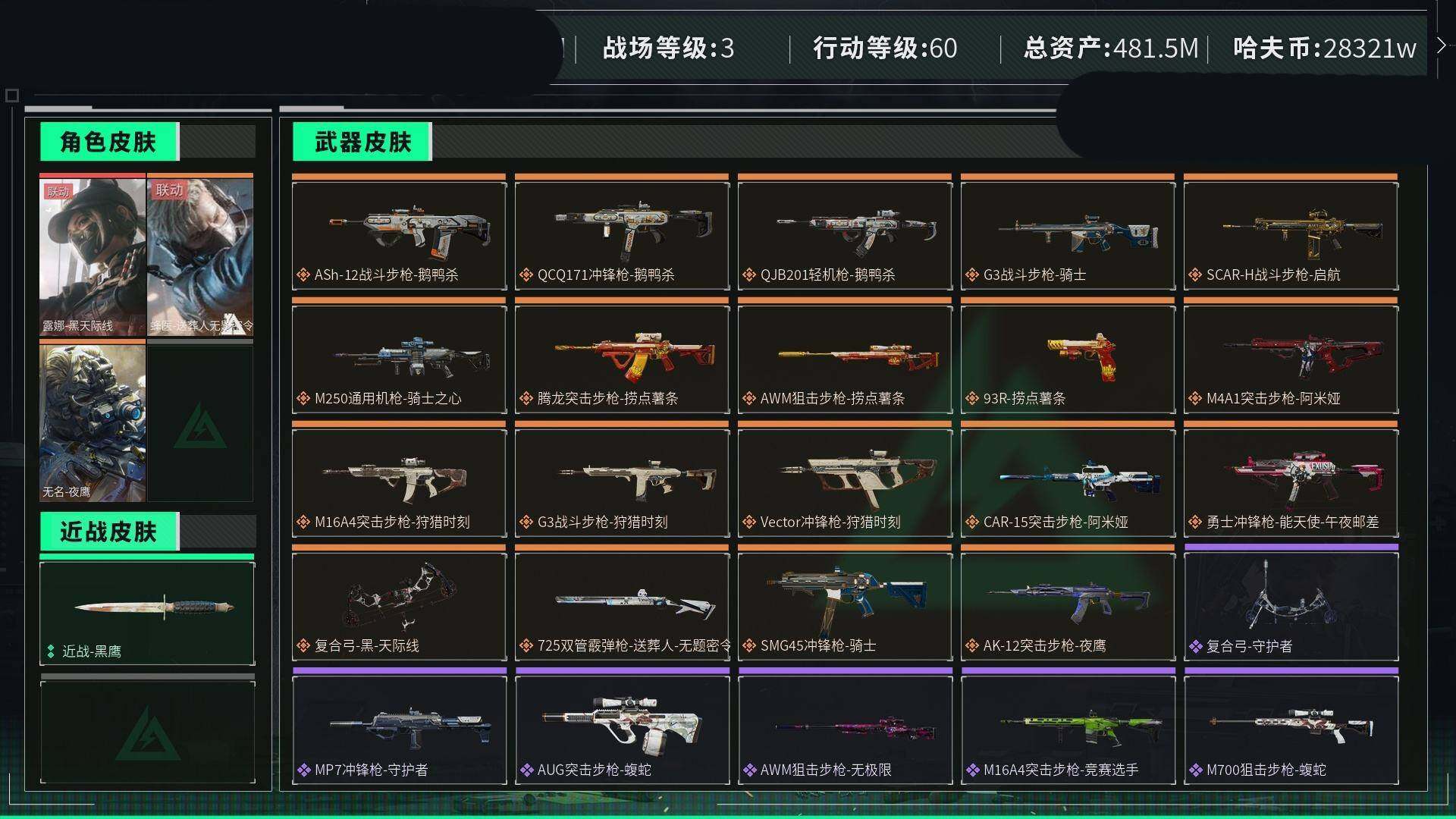 [12651573]汤39482总资产481M,哈夫币28321w,露娜-黑天际线/蜂医-送葬人无题密令/无名-夜鹰,枪皮数量176,战场等级:3 无军衔,行动等级:60 黄金,近战-黑鹰,安全箱等时效性道具请以游戏内数据为准;详情请看图【个人信息】战场等级:3 无军衔,行动等级:60 黄金【哈夫币】28321w【总资产】481M【货币】43三角币/0曼德尔币/0三角券【安全箱】基础安全箱2(1x2)/S6高级安全箱6(2x3)【通行证】烽火地带限定版【特勤处】制药台Lv.3/工作台Lv.3/仓库Lv.8/防具台Lv.3/训练中心Lv.7/靶场Lv.6/技术中心Lv.3/指挥中心Lv.6/潜水中心Lv.1/收藏室Lv.1【角色皮肤】露娜-黑天际线/无名-夜鹰/蜂医-送葬人无题密令/【已拥有捆绑包】狩猎时刻捆绑包/捞点薯条捆绑包/【近战皮肤】近战-黑鹰/【步枪皮肤】QBZ95-1突击步枪-曙光/AUG突击步枪-蝮蛇/G3战斗步枪-战场英杰/AK-12突击步枪-夜鹰/SG552突击步枪-深海恐惧/SG552突击步枪-尖端治疗/AS Val突击步枪-尖端治疗/ASh-12战斗步枪-守夜人/AKM突击步枪-林中猎手/PTR-32突击步枪-英雄/腾龙突击步枪-无垢/M16A4突击步枪-竞赛选手/SR-3M紧凑突击步枪-荒野求生/CAR-15突击步枪-阿米娅/M4A1突击步枪-阿米娅/G3战斗步枪-狩猎时刻/M16A4突击步枪-狩猎时刻/腾龙突击步枪-捞点薯条/G3战斗步枪-骑士/ASh-12战斗步枪-鹅鸭杀/SCAR-H战斗步枪-启航/SR-3M紧凑突击步枪-战术竞备/【冲锋枪皮肤】Vector冲锋枪-狩猎时刻/MP5冲锋枪-深海恐惧/SMG45冲锋枪-骑士/MP7冲锋枪-无垢/勇士冲锋枪-能天使-午夜邮差/P90冲锋枪-紧急戒备/MP7冲锋枪-守护者/QCQ171冲锋枪-鹅鸭杀/MP5冲锋枪-战术竞备/【霰弹枪皮肤】M1014霰弹枪-林中猎手/725双管霰弹枪-送葬人-无题密令/【轻机枪皮肤】PKM通用机枪-英雄/PKM通用机枪-守夜人/PKM通用机枪-荒野求生/M250通用机枪-囚徒/QJB201轻机枪-OldHabits/M250通用机枪-骑士之心/QJB201轻机枪-鹅鸭杀/【精准射手步枪皮肤】SR-25射手步枪-尖端治疗/PSG-1射手步枪-无垢/【狙击步枪皮肤】SVD狙击步枪-阿萨