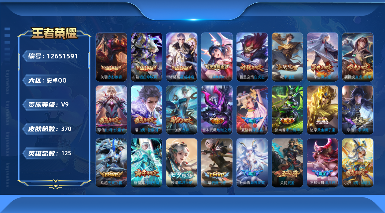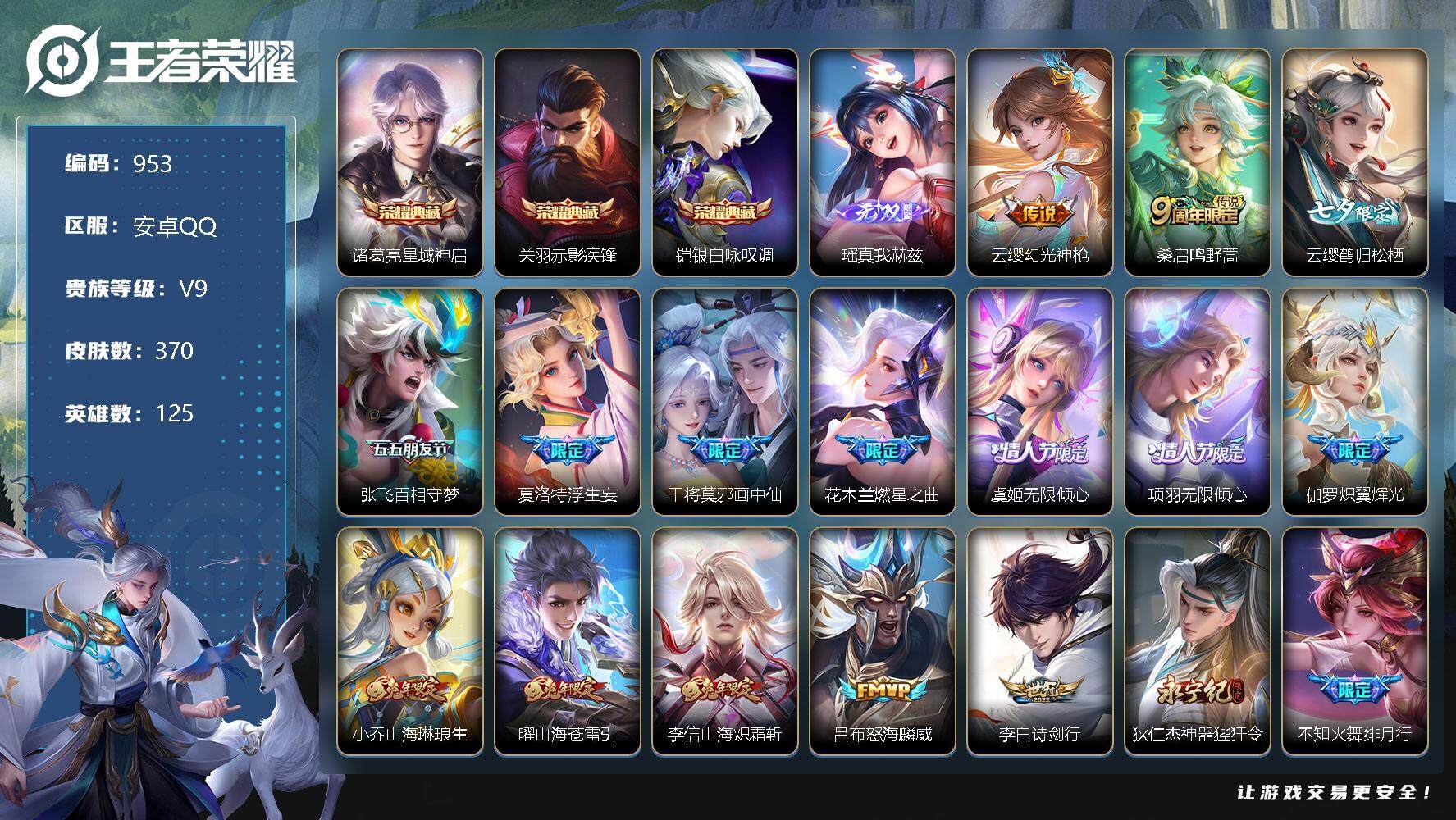 [12651591]安卓Q-V5-永恒钻石III段位-125英雄-370皮肤-3典藏-0珍品无双-1无双-0珍品传说-42传说-118史诗