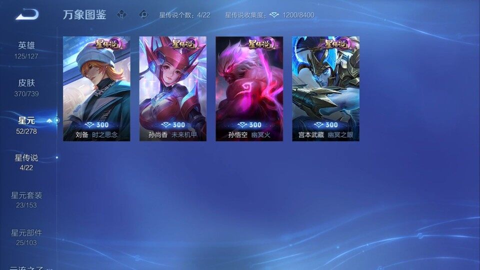 牛魔御旌,盾山御銮,夏侯惇朔风刀,明世隐疑决卦,老夫子醍醐杖,鬼谷子原初探秘者,狄仁杰万华元夜,程咬金演武夺筹,钟馗驱傩正仪,苏烈千军破阵,刘邦夺宝奇兵,马可波罗暗影游猎,蒙犽狂想玩偶喵,元歌云间偶戏,弈星混沌棋,达摩沙漠行僧,兰陵王金庭之子,沈梦溪大漠名商,李元芳云中旅人,桑启海盐诗旅,裴擒虎擒涛扼浪,鲁班大师探海日志,张良古海寻踪