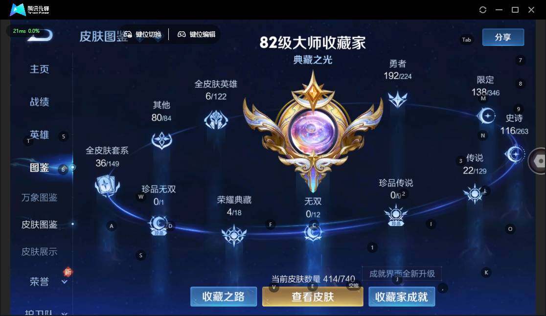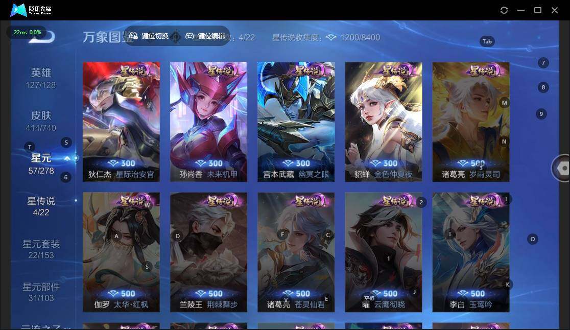 - [12116501]V8 1典藏 15传说 124英雄 334皮肤 可修改实名 女号 优质装备:鸣剑·曳影,云鹰飞将(小将军),猫影幻舞,一念神魔,仲夏夜之梦(大飞蛾),胖达荣荣,乞巧织情,遇见胡旋,音你闪耀(rap皮),炽翼辉光(娃娃菜牛角包),诡秘之主,涂山容容 珍宝阁皮:优雅恋人,蔷薇恋人 限定皮:白虎志(电光耗子),异界灵契(白毛香),前尘镜,时之彼端,神威(电光马子),飞衡(韩信年限),山海·碧波行(瑶年限),遇见飞天,高山流水,无限倾心-虞姬,冰锋战神,游园惊梦,梁祝,天狼征服者,天狼绘梦者,李小龙,朱雀志(守约年限),霸王别姬-虞姬,孙行者,猪悟能,一生所爱,大圣娶亲,热情桑巴,匿光追影者,寅虎·御盾(廉颇年限),时之奇旅-妲己,山海·玄木吟(马可年限) 史诗皮:赞萌露比,龙之律动,百相守梦-周瑜,紫霞仙子,电玩小子(小书包),黄金分割率,特工魅影,永昼,冰冠公主,江河有灵,高渐离燃音魔法,魅语,无限星赏官,猫狗日记-孙策,时之恋人-孙尚香,乱世虎臣,节奏热浪,修罗,女仆咖啡,水果甜心,绅士熊喵,星夜王子,心灵骇客,时之奇旅-安琪拉,功夫厨神,德古拉伯爵,暗隐猎兽者,幽灵船长,鬼剑武藏,心灵战警,舞动绿茵,地狱岩魂,纤云弄巧,繁星吟游(呼啦呼啦),拒霜思,缤纷独角兽,乘风破浪,逐浪之夏,月团寄思,水晶猎龙者,曙光守护者,箭羽风息,金属风暴,原初追逐者,圣诞狂欢,圣诞恋歌,鹰眼统帅,王者之锤,魅力维加斯,黎明之约,寅虎·御盾,无心,未来纪元-赵云