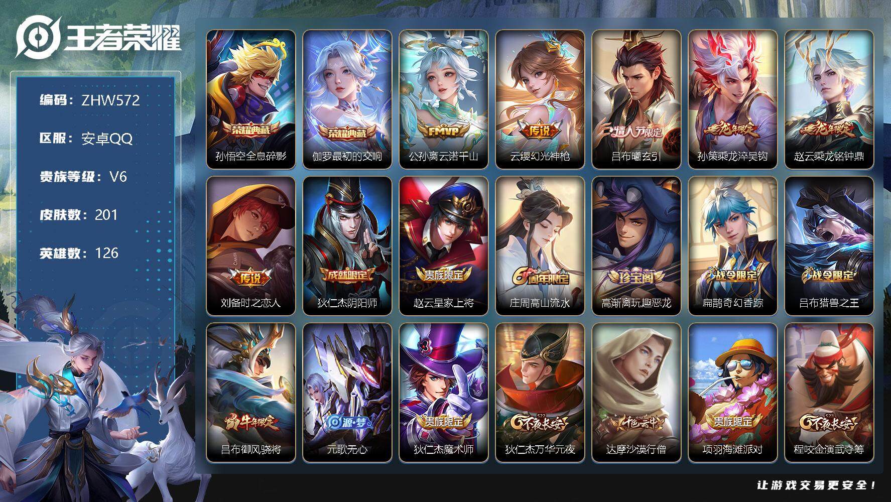 [12653048]安卓Q-V6-最强王者段位-126英雄-201皮肤-2典藏-6传说-54史诗