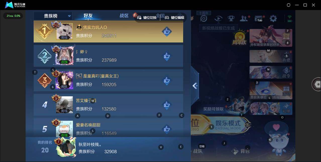 - PX_2104502-实名: 可修改 贵族等级: V2 英雄数: 78 皮肤数: 42 荣耀水晶: 幻阙歌
