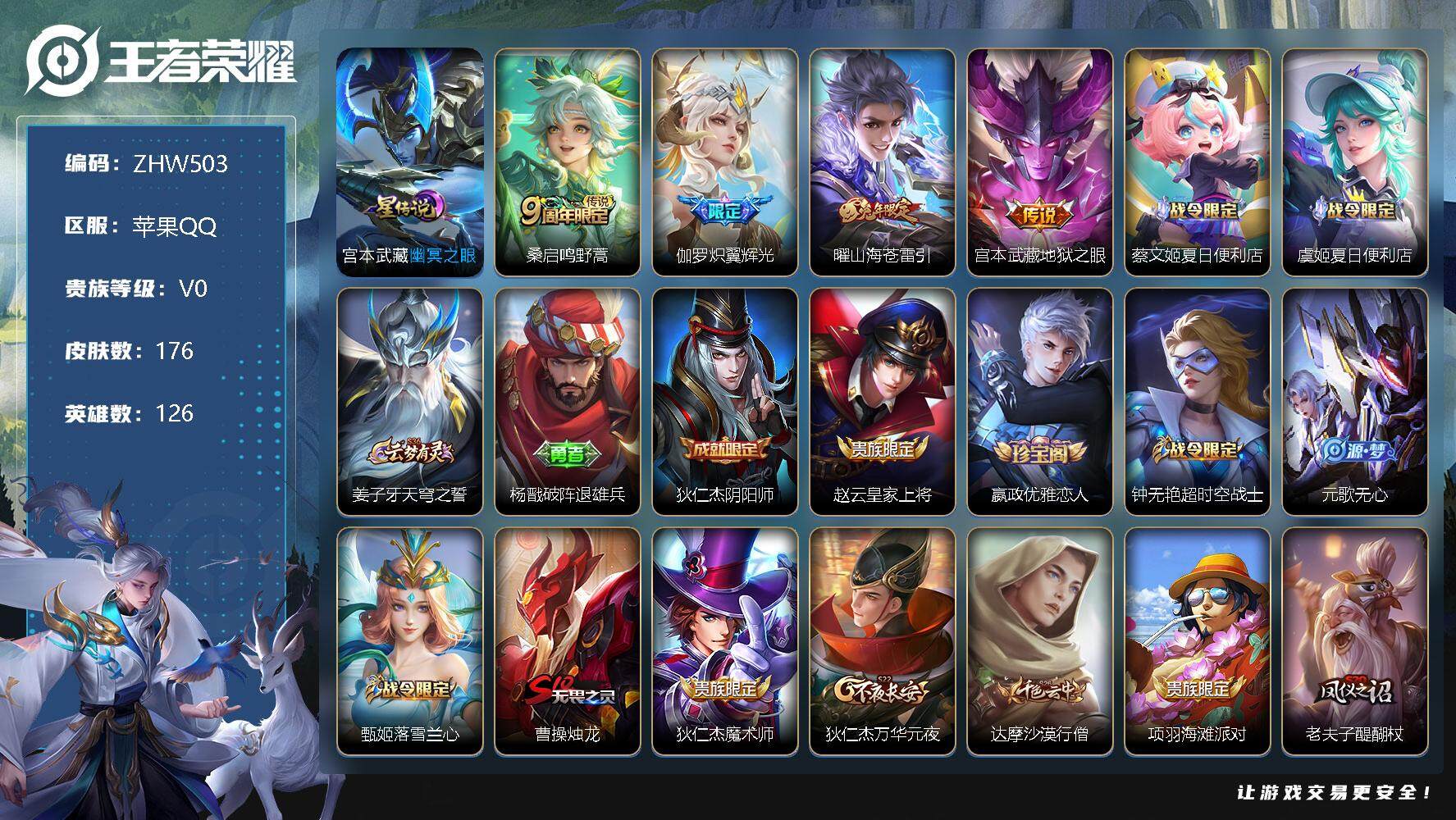 [12653270]苹果Q-V0-尊贵铂金I段位-126英雄-176皮肤-4传说-43史诗