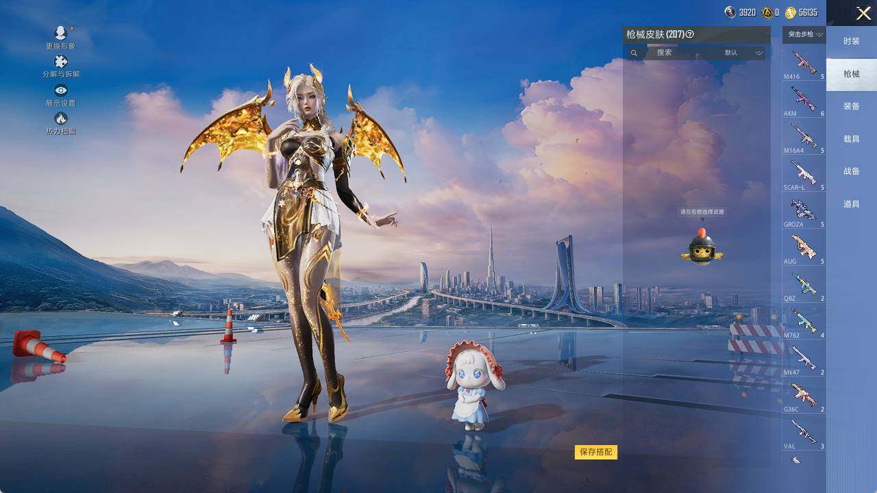 AKM-炫紫旋律,M416-心之恋语,GROZA-圣辉之星,AUG-暖羊咩咩,Kar98K-巳巳如意,Kar98K-圣域龙灵,MK12-雪月幻音
