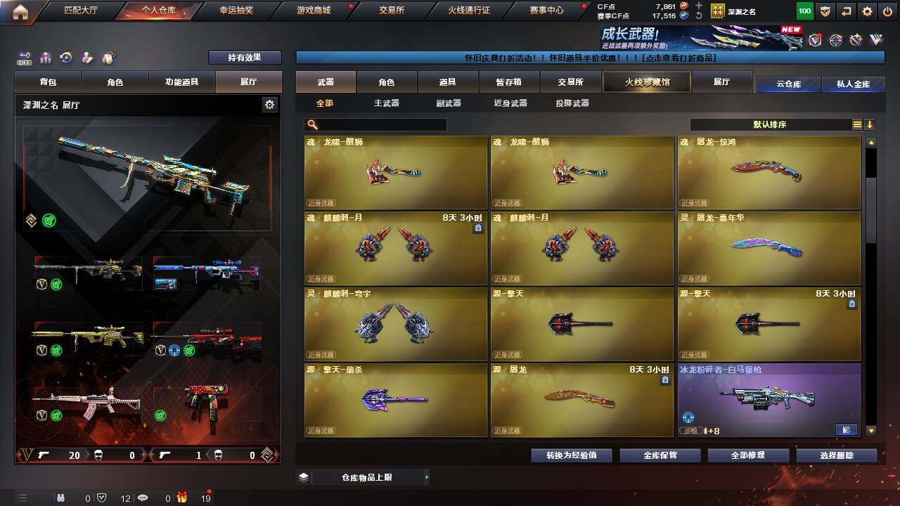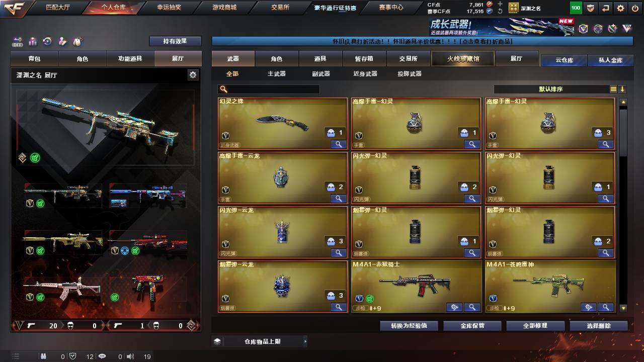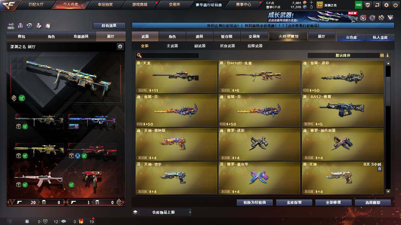 【英雄级武器】:幻灵之锋,QBZ03-金色蔷薇,M4A1-黑骑士,AWM-裁决,M200-幻神,黑武士-锦绣游龙,M4A1-赤狱骑士,擎天,屠龙
