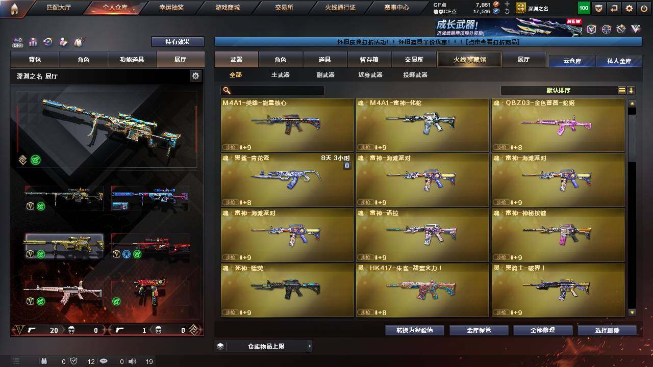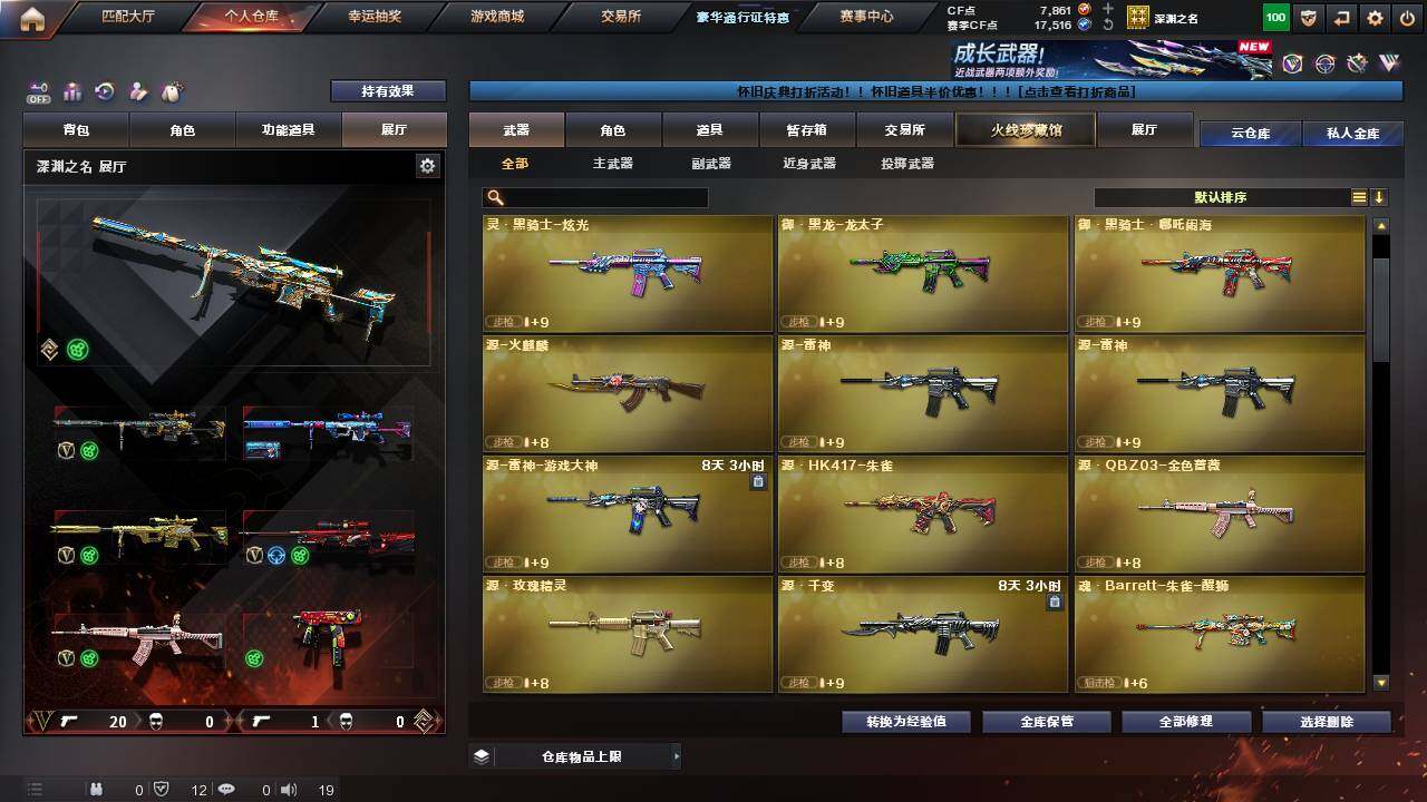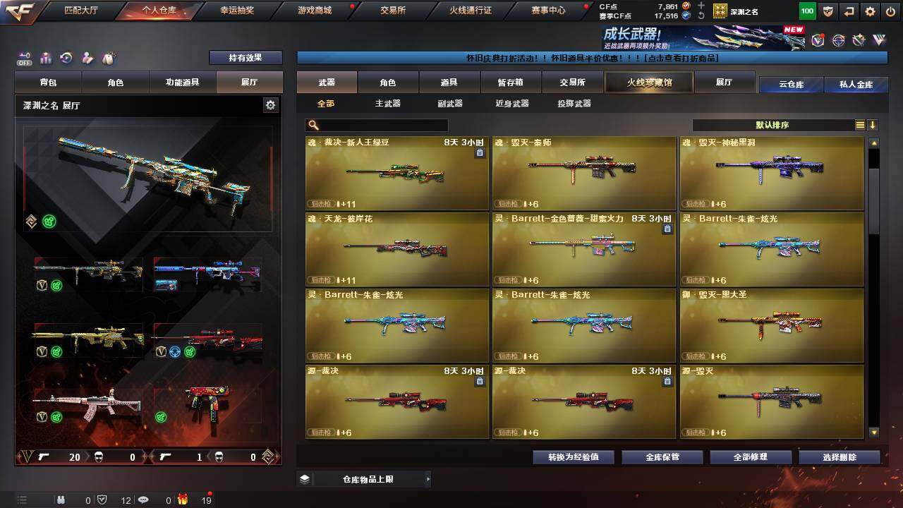 【热门武器】:传说灵眸,QBZ03-金色蔷薇,M200-幻神,死亡之眼,M4A1-黑骑士