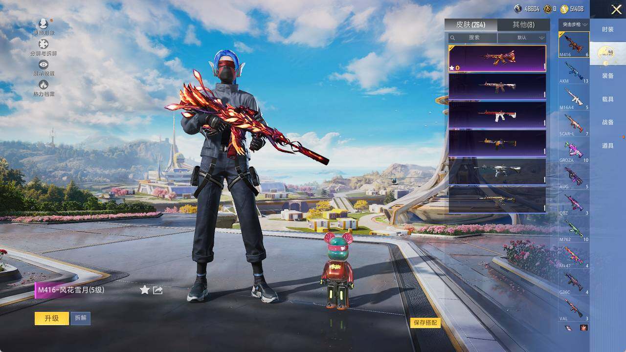M416-风花雪月,M762-青锋波束,Kar98K-巳巳如意,M249-蓝莓炮弹