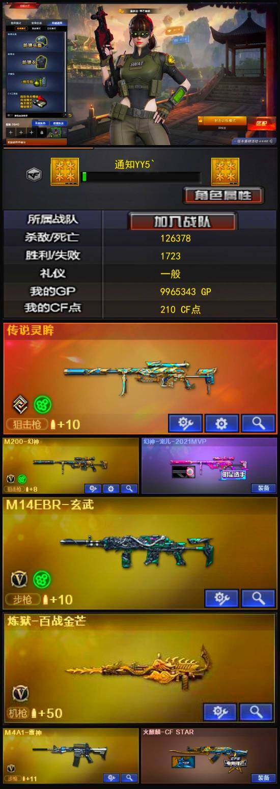 - [12942050]河北一区-21V-1王者-0炫金 【热门武器】:QBZ03-金色蔷薇,金色蔷薇-古蛇迷踪,修罗-古蛇迷踪,M200-竞技荣光,USP-雷暴,沙鹰-修罗 【稀有皮肤】:火麒麟-百城,AWM-CFS 2020 【角色】:王者葵-惊若翩鸿,电竞教官-云悠悠 【人偶武器】:AWM-灵狐-15周年嘉年华,迷你深渊冰龙,迷你巨石泰坦-魔花研究所,迷你牛魔王,迷你波特博士,夺魂,深渊终结者手雷 【暴走生化】:黑龙吞噬者,超级对讲机 【挑战大师】:神圣爆裂者-末日III 【英雄级武器】:M200-竞技荣光,柯尔特-竞技荣光,擎天-竞技荣光,高爆手雷-竞技荣光,烟雾弹-竞技荣光,闪光弹-竞技荣光,USP-雷暴,烈火-动感闪耀,天神-动感闪耀,屠龙-动感闪耀,手雷-动感闪耀,QBZ03-金色蔷薇,金色蔷薇-古蛇迷踪,无影-神兵利器,M4A1-雷神,AK47-火麒麟,黑武士-锦绣游龙,M4A1-赤狱骑士,修罗-古蛇迷踪,沙鹰-修罗