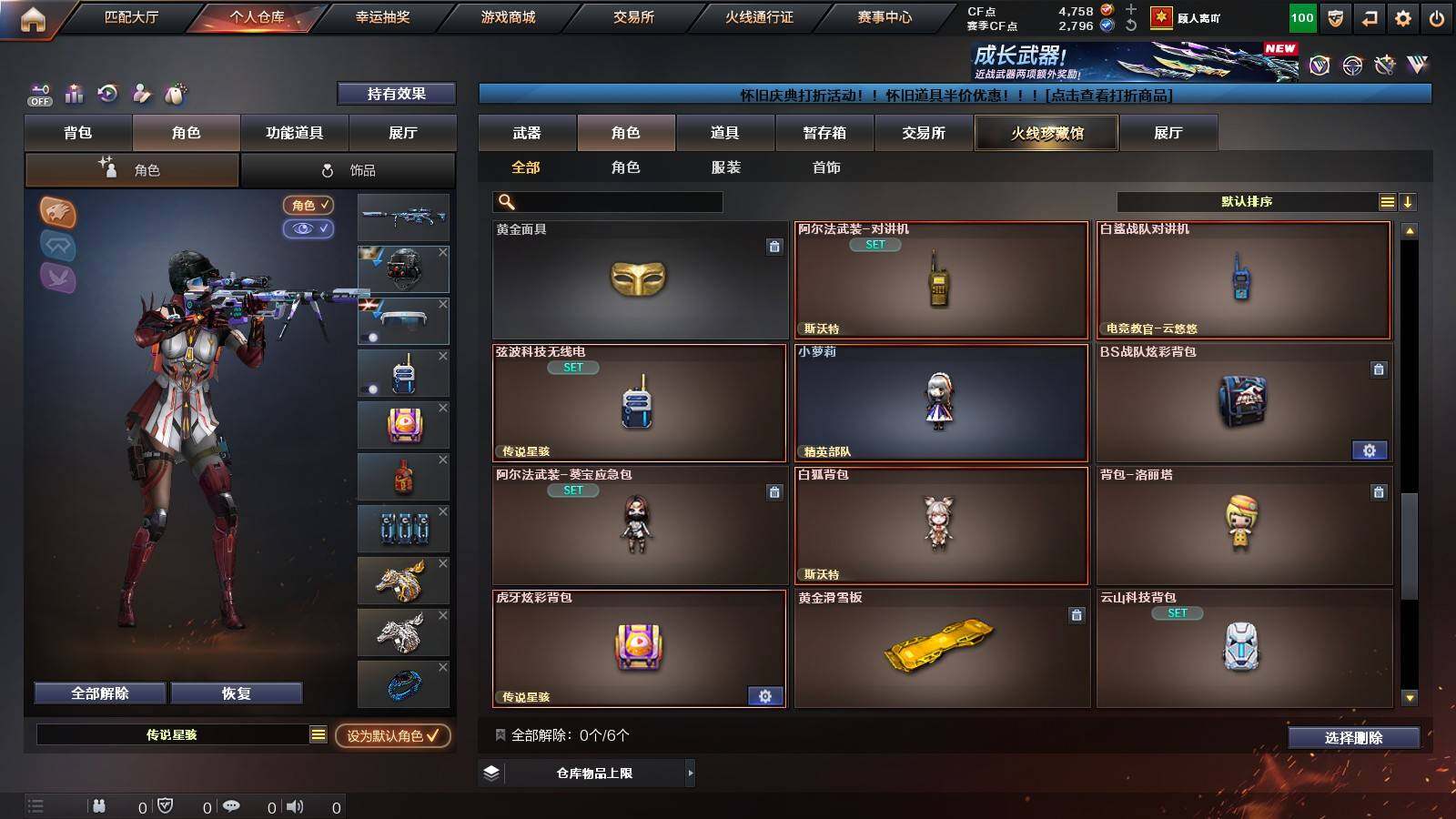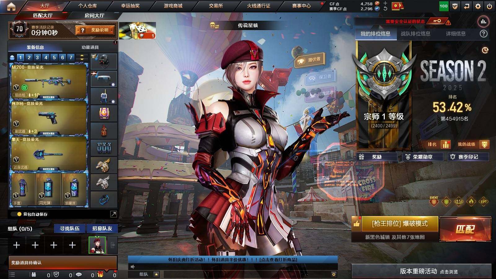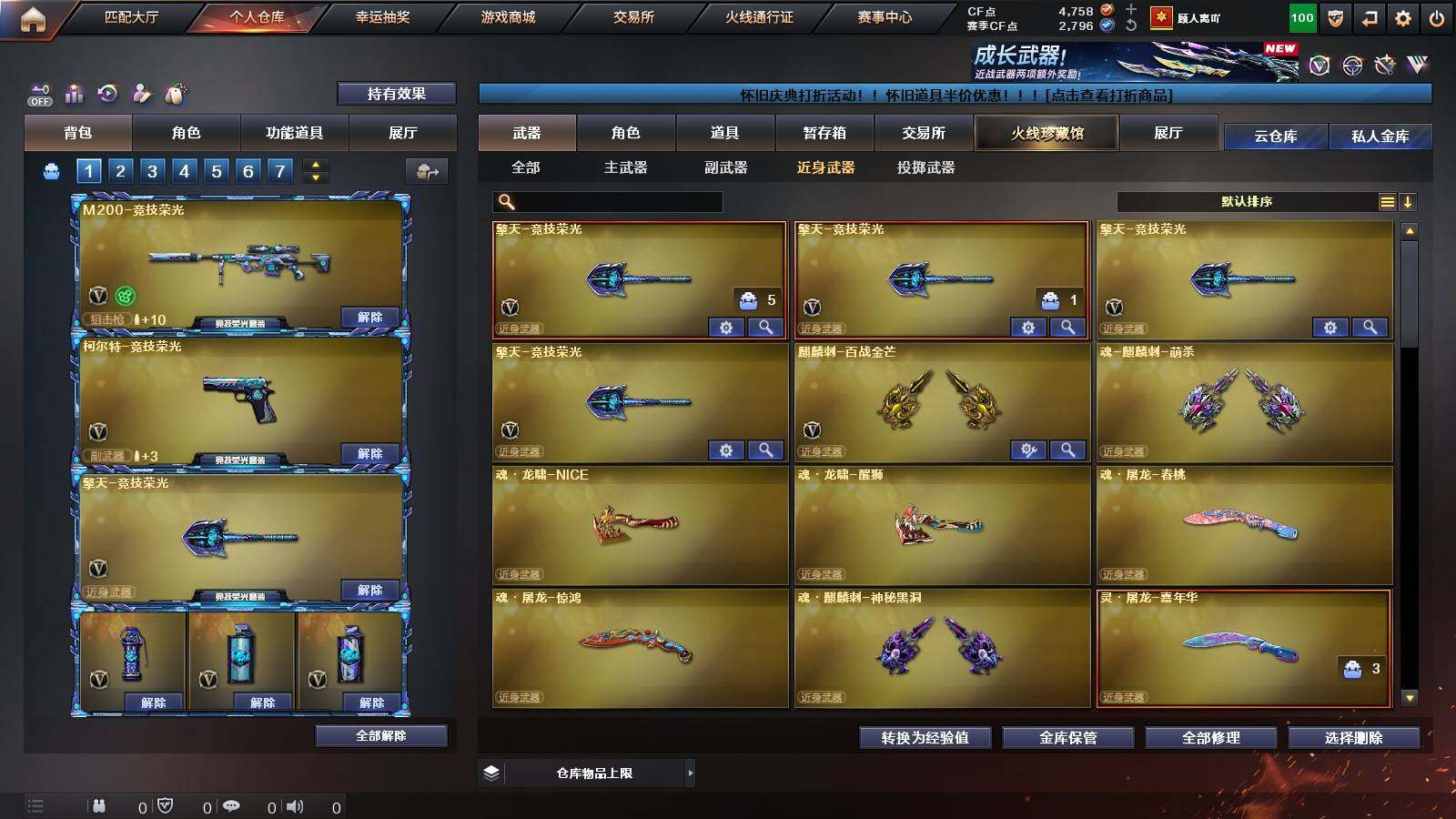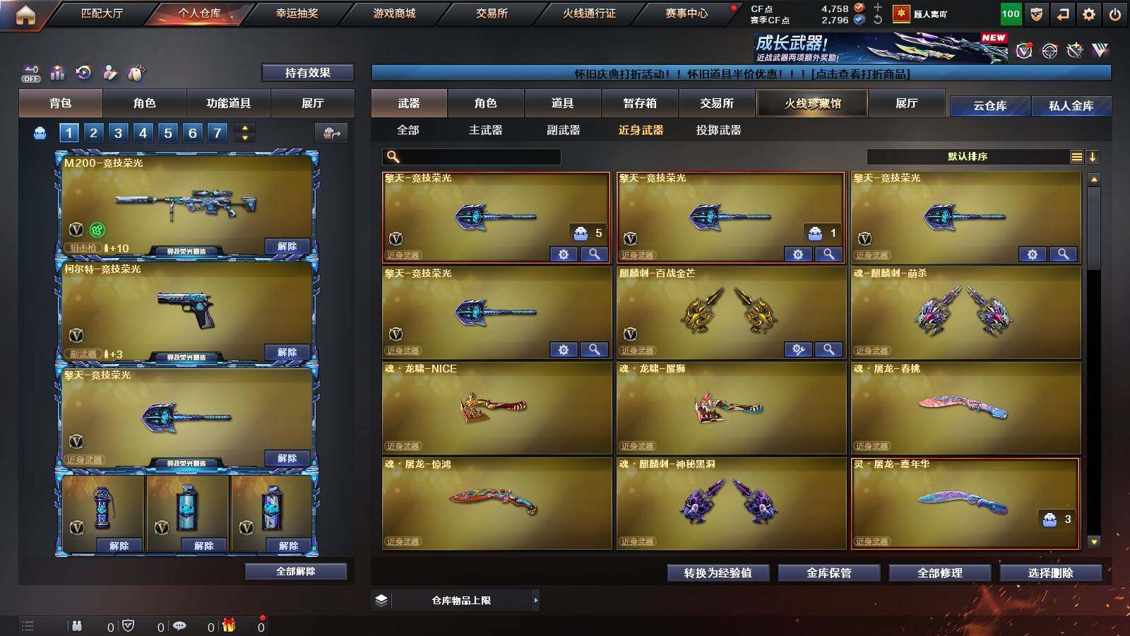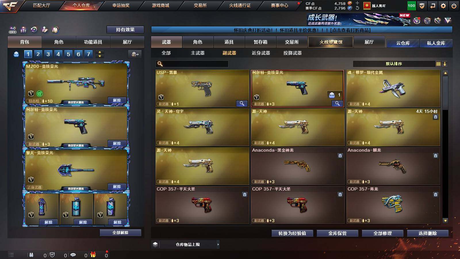 【英雄级武器】:M200-竞技荣光,柯尔特-竞技荣光,擎天-竞技荣光*4,高爆手雷-竞技荣光*3,烟雾弹-竞技荣光*3,闪光弹-竞技荣光*3,USP-雷暴,QBZ03-金色蔷薇,Scar Light-白虎,无影-神兵利器,M4A1-雷神,AWM-天龙,Barrett-毁灭