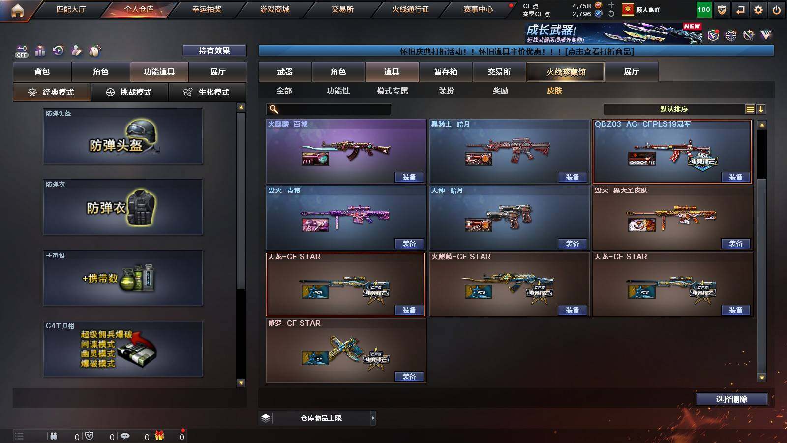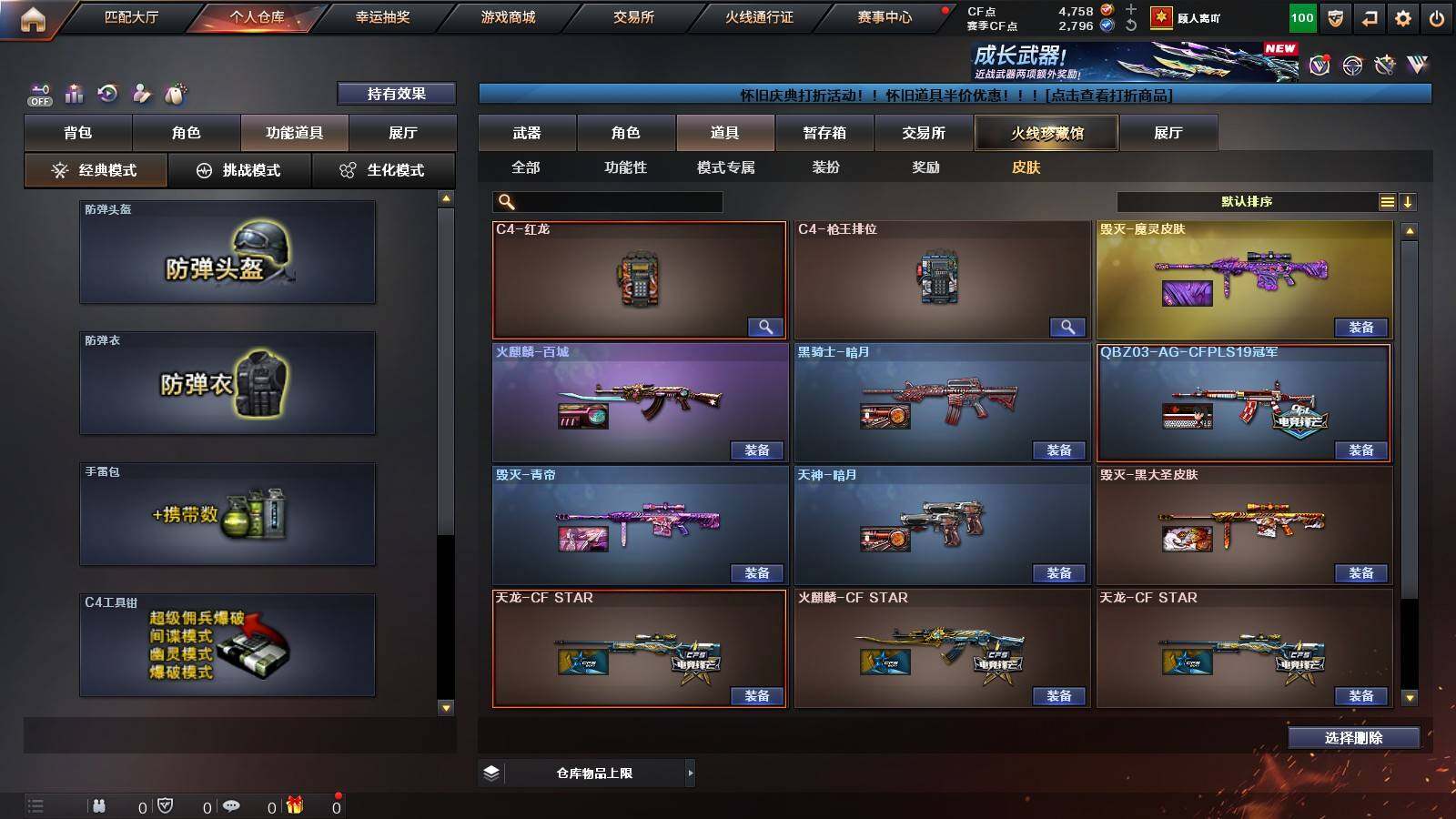 【稀有皮肤】:QBZ03-AG-CFPLS19冠军,火麒麟-百城,黑骑士-暗月,毁灭-黑大圣皮肤,天神-暗月