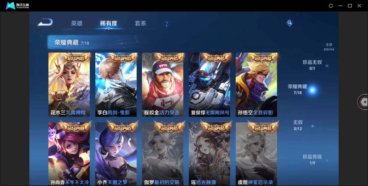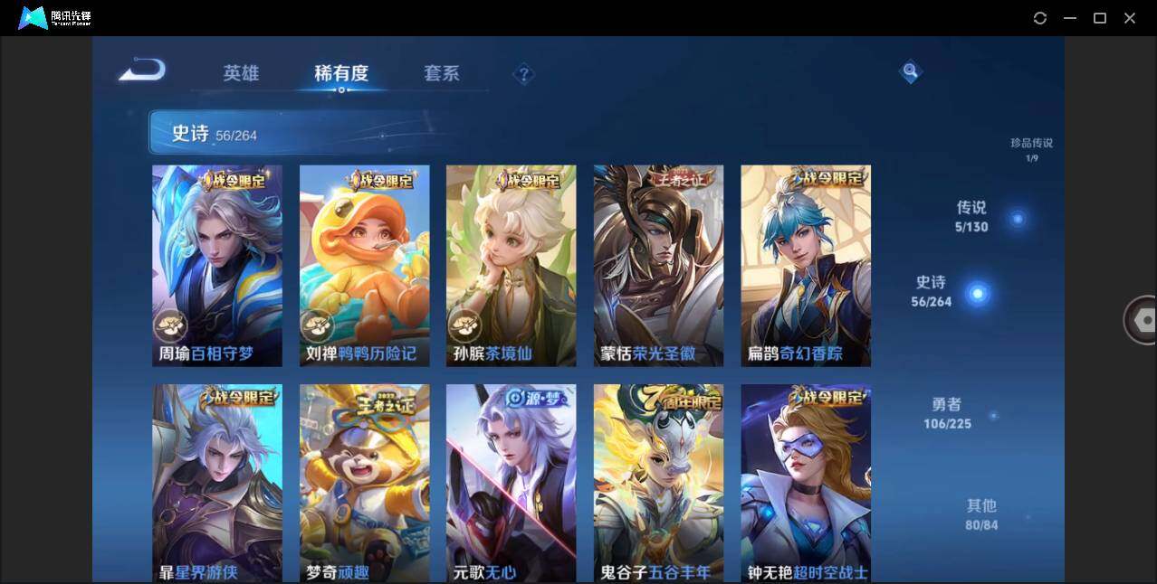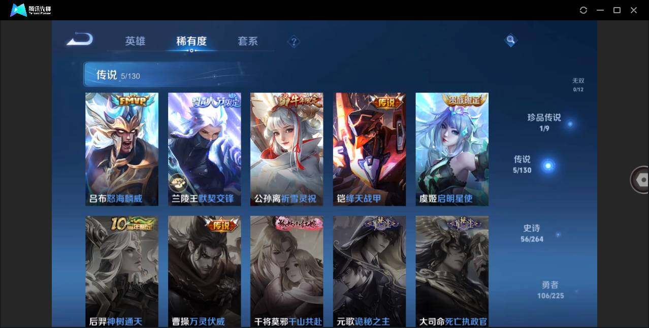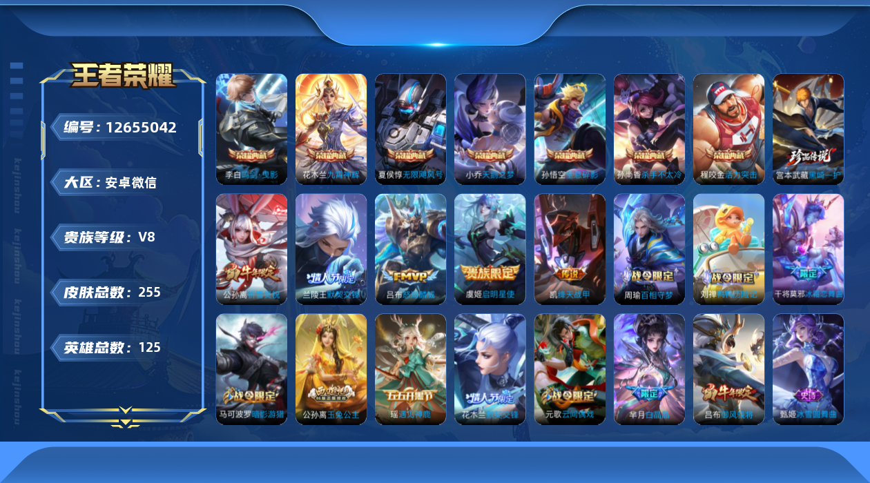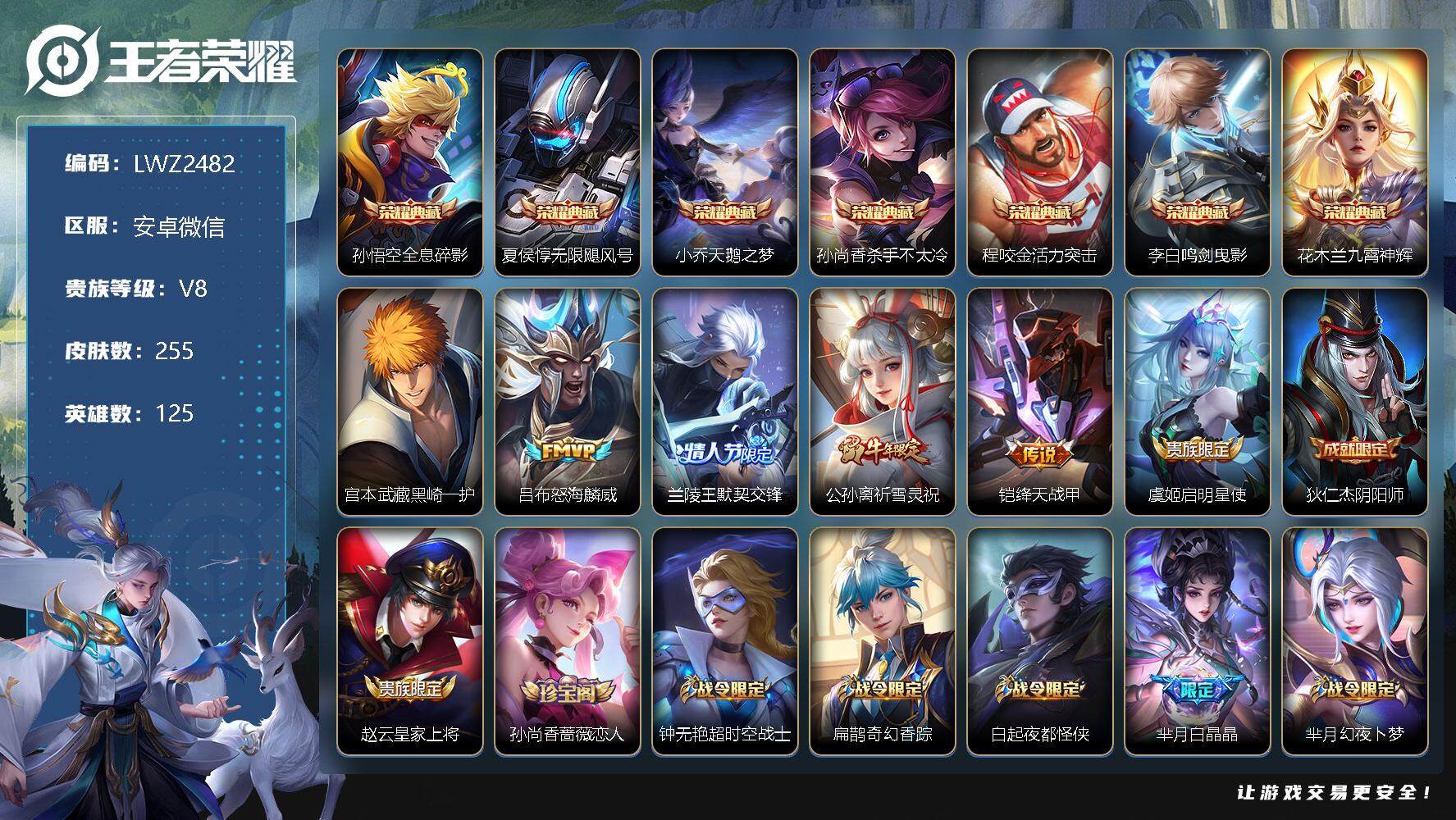 [12655042]安卓WX-V8-至尊星耀III段位-125英雄-255皮肤-7典藏-1珍品传说-5传说-56史诗
