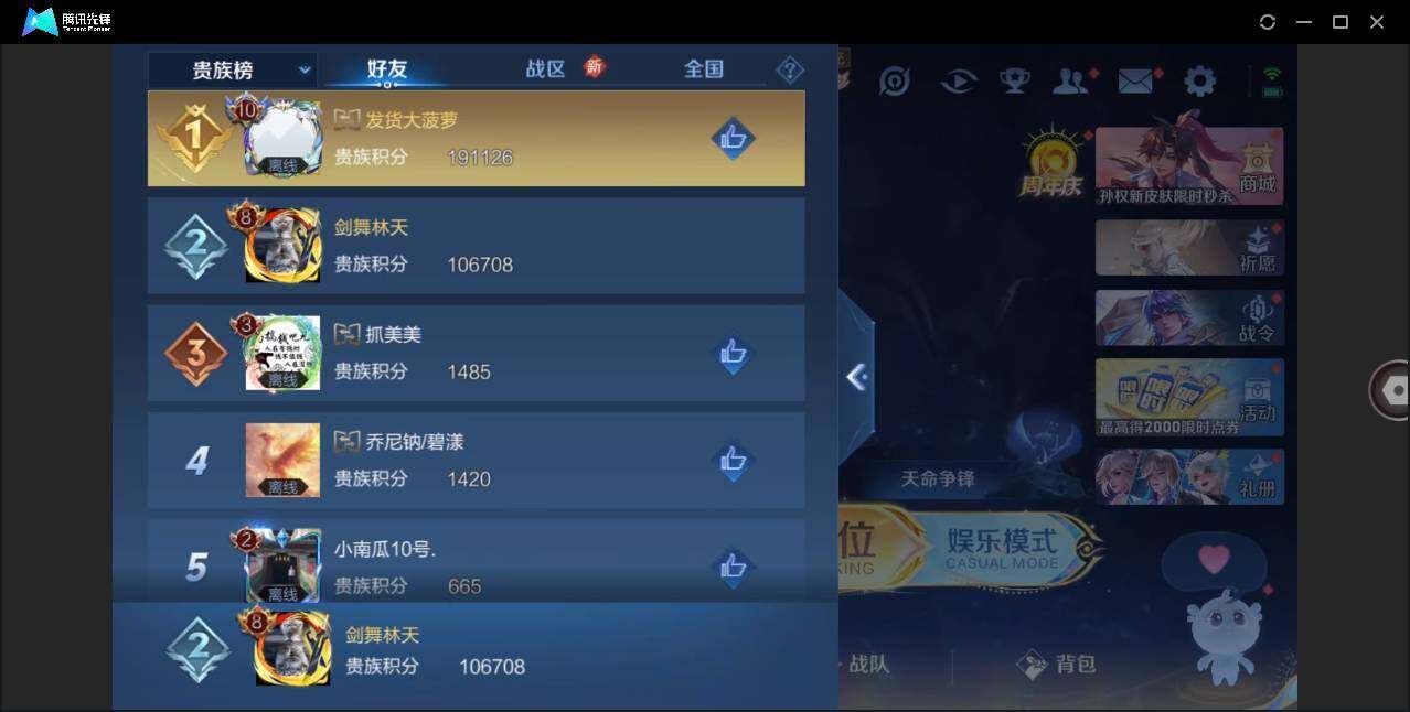 - [11472219]V9 2典藏 13传说 125英雄 313皮肤 可修改实名 连体和平 荣耀水晶:弑枪猎影(韩信典藏),活力突击 传说皮:黄金天蝎座,乘龙·淬吴钩(孙策年限),典韦战鼓燎原,山海·炽霜斩(李信年限),地狱之眼,一念神魔,炽阳神光,音你心动-周瑜,碎云,百相守梦(张飞) 珍宝阁皮:蔷薇恋人,玩趣恶龙 限定皮:至尊宝,魔法小厨娘,神威(电光马子),高山流水,降魔,五谷丰年,游园惊梦,李小龙,孙行者,猪悟能,天魔缭乱,青春决赛季,匿光追影者,女儿国国王,寅虎·瑞焰(虎皮蛋子),百木心枪,玉兔公主,匿光启智者 史诗皮:石田雨龙,怒海争锋,决胜骁骑,奇遇星旅,蔬乡物语(鲁班七号),琥珀纪元伽罗,紫霞仙子,苍穹之光,黄金分割率,特工魅影,千年之狐,永昼,江河有灵,高渐离燃音魔法,百解令(蒙犽),蒙恬荣光圣徽,冰冠公主,偶像歌手,无限星赏官,电玩·爆裂旋风,龙骑士(小龙虾),末日机甲-吕布,猫狗日记-孙策,时之恋人-孙尚香,乱世虎臣,节奏热浪,女仆咖啡,摇滚巨星,水果甜心,绅士熊喵,天才门将,星夜王子,心灵骇客,功夫厨神,德古拉伯爵,暗隐猎兽者,幽灵船长,鬼剑武藏,暗渊魔法,心灵战警,乐园奇幻夜,天秀·启明,舞动绿茵,地狱岩魂,纤云弄巧,拒霜思,缤纷独角兽,乘风破浪,逐浪之夏,水晶猎龙者,曙光守护者,热力回旋,箭羽风息,金属风暴,圣诞狂欢,圣诞恋歌,鹰眼统帅,暗夜贵公子,魅力维加斯,黎明之约,赏金猎手,千筹问战,无心,未来纪元-赵云