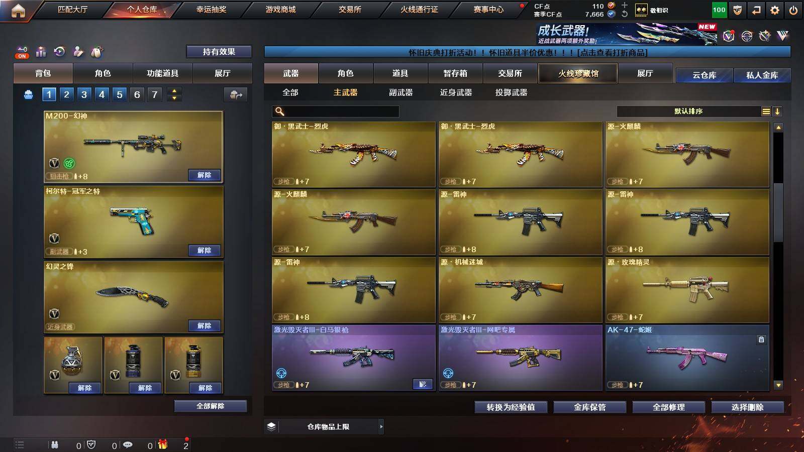 【英雄级武器】:幻灵之锋,QBZ03-金色蔷薇,M4A1-青龙,M4A1-雷神,M200-幻神,AK47-黑鲨,柯尔特-冠军之特,擎天-云海游龙