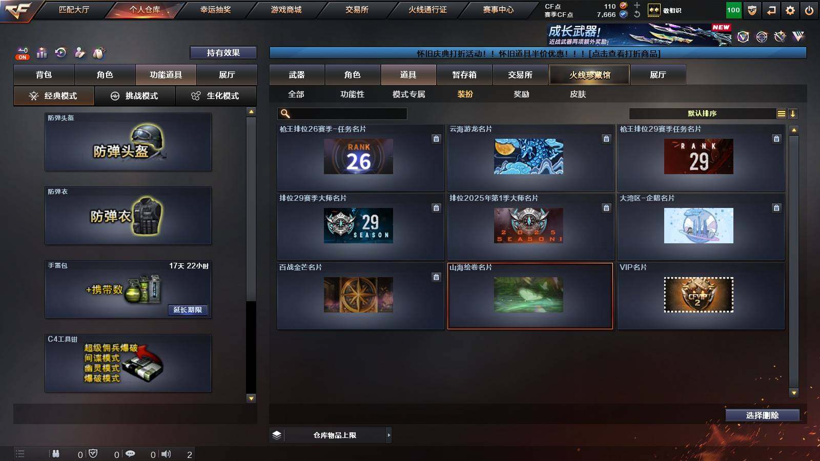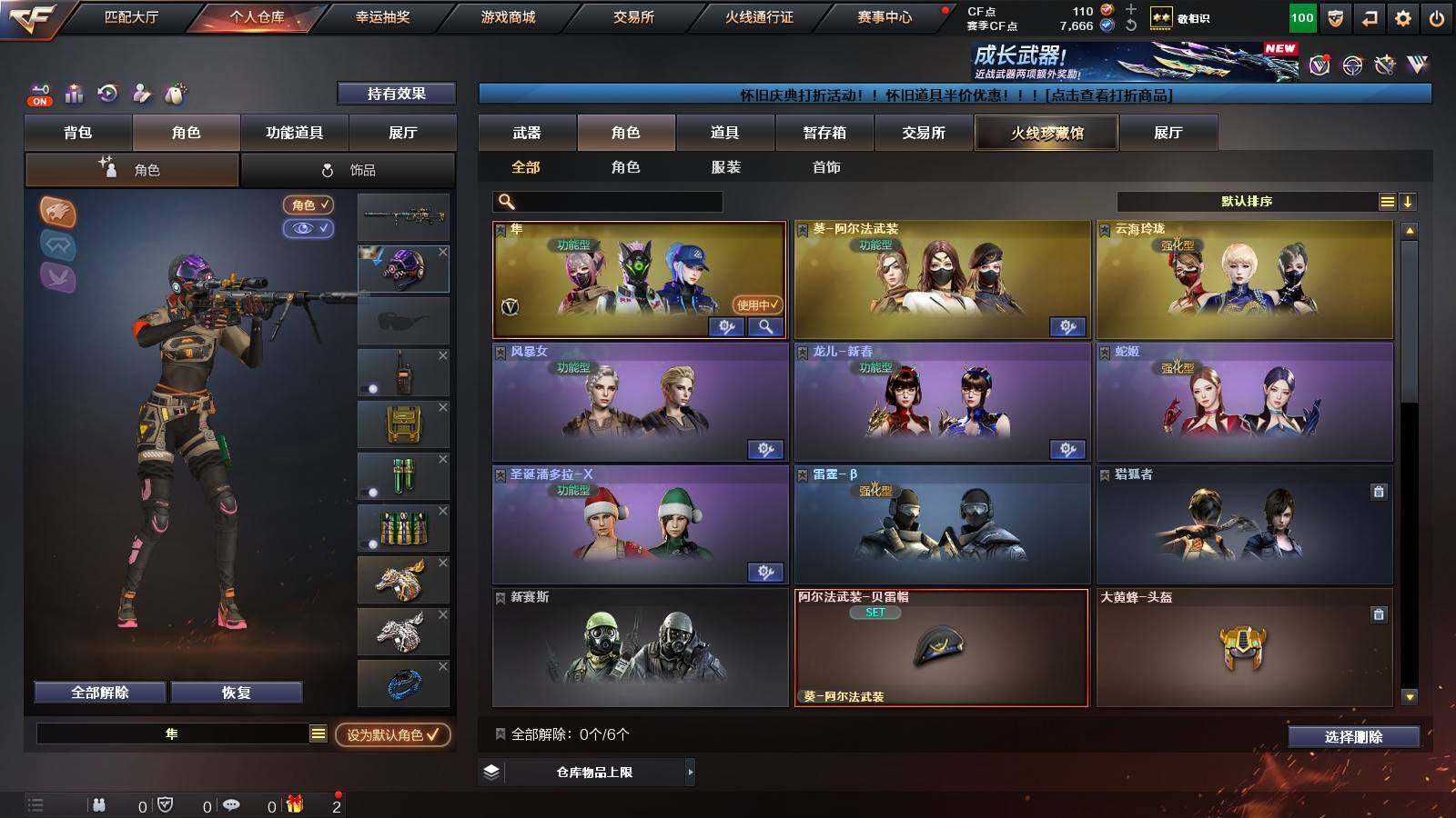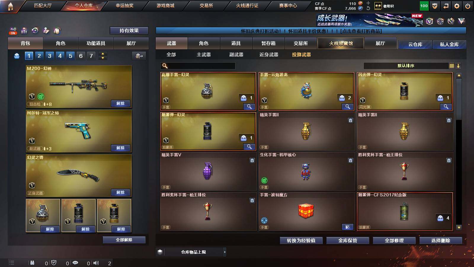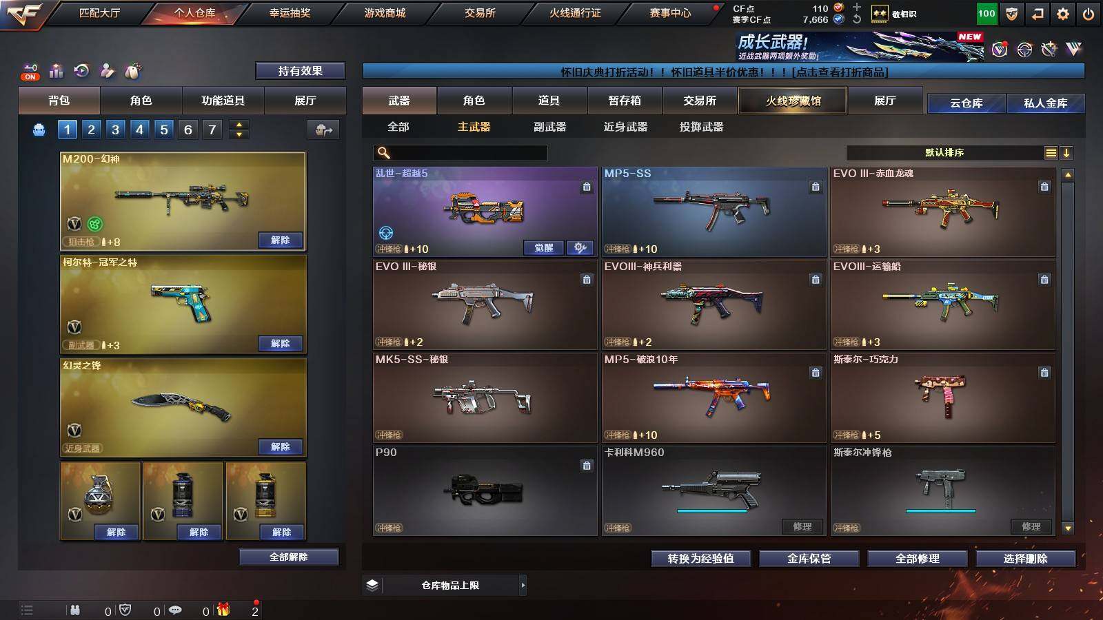 - [13625912]重庆一区-59V-5王者-4炫金 【热门武器】:QBZ03-金色蔷薇,HK417-朱雀,死亡之眼,M4A1-黑骑士,汤姆逊-烈龙*4,加特林-炼狱*2,沙鹰-修罗 【王者炫金武器】:王者冰魄,王者之魄,王者之心,王者之刺,炫金黑龙,炫金雷神,炫金毁灭,炫金修罗 【音效卡】:M4A1-黑骑士音效卡,Barrett-毁灭音效卡,炼狱-百战金芒-庆典舞曲音效卡 【皮肤】:雷神-暗月,雷神-能量核心*3,雷神-星空*2,M4A1-再燃火线,火麒麟-雷神,火麒麟-华夏之心,毁灭-星空,毁灭-黑大圣皮肤,黑龙-暗月*2,黑骑士-暗月,战神-流金岁月皮肤,天龙-秘银,AWM-天龙-传奇白鲨,极光-能量核心,轻型军用手斧-再燃火线 【角色】:零,魅影,王者-零,乔伊教练,修道士,暗夜-X,北极狐-X,初恋灵狐,风暴女,零-水下丽影,灵狐者-X,龙儿,潘多拉-X,雪莉杨,影武者-X 【人偶武器】:迷你生化手雷*2,生化手雷-机甲核心,闪光弹-小乔 【暴走生化】:死亡之眼 【挑战大师】:激光毁灭者III 【英雄级武器】:AK47-火麒麟*3,M4A1-黑龙,M4A1-雷神*6,M4A1-黑骑士,M4A1-死神,AK47-黑武士,M4A1-武圣,AK47-机械迷城,AK47-黑鲨,M4A1-龙血,HK417-朱雀,M4A1-玫瑰精灵,QBZ03-金色蔷薇,AK47-B-战神,AWM-天龙,Barrett-毁灭*8,AWM-裁决*3,Barrett-金色蔷薇*2,加特林-炼狱*2,汤姆逊-烈龙*4,沙鹰-修罗,沙鹰-天神*2,屠龙,龙啸*2,擎天,麒麟刺*2,麒麟刺-百战金芒 【道具】:云山科技背包,冰冰企鹅背包-猛男专用,百战金芒炫彩背包,超级背包,女皇终结者-魔龙之吻,救世主-黑桃战神,绿色巨人,灵魂忍者,变异宝贝,迷雾幽灵,生化弹匣*2,夺命之镰,防化服*3,语音特效-盛典烟火,萌萌小葵表情,C4-红龙,防弹头盔*7,防弹衣*6,C4工具钳*4,手雷包*3 【特殊枪械】:1黑骑士,4烈龙,2炼狱