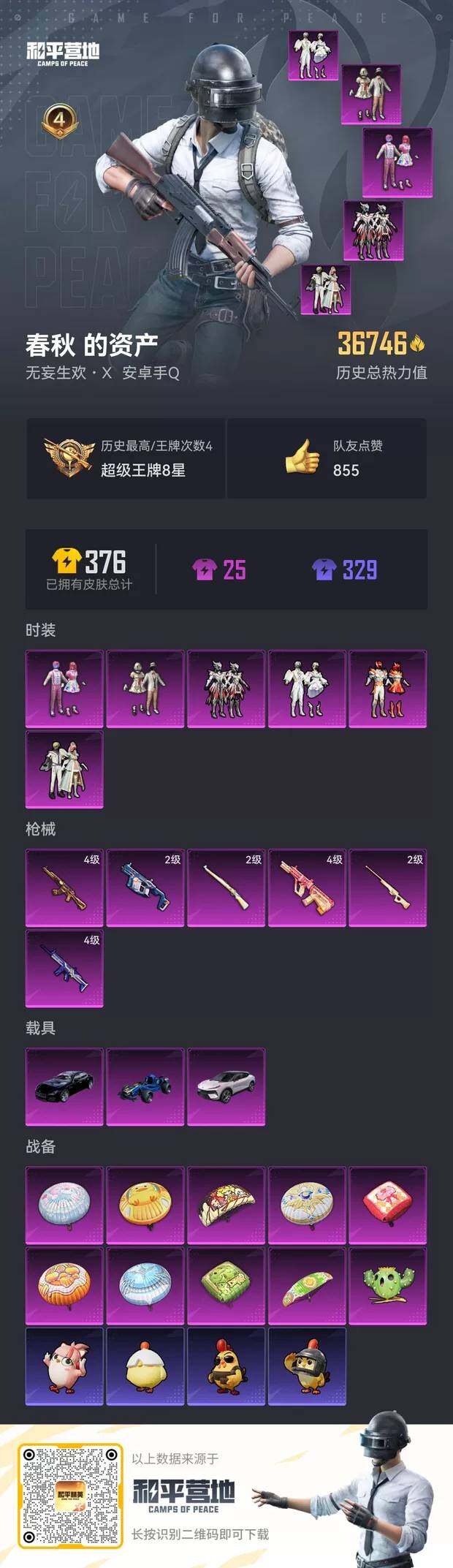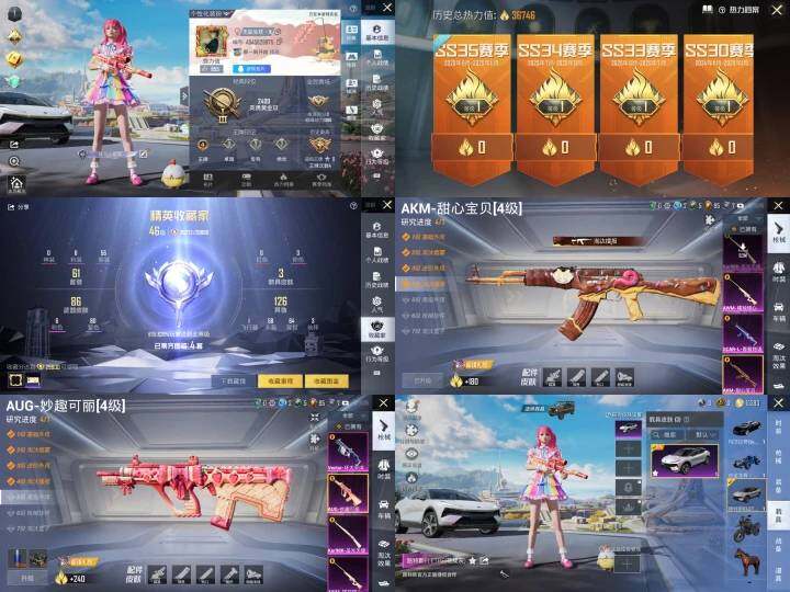 [12680305]安卓 手Q-6粉装-6特效枪-3载具-1粉色飞行器-36746热力值-4王牌印记-61套装-90枪皮