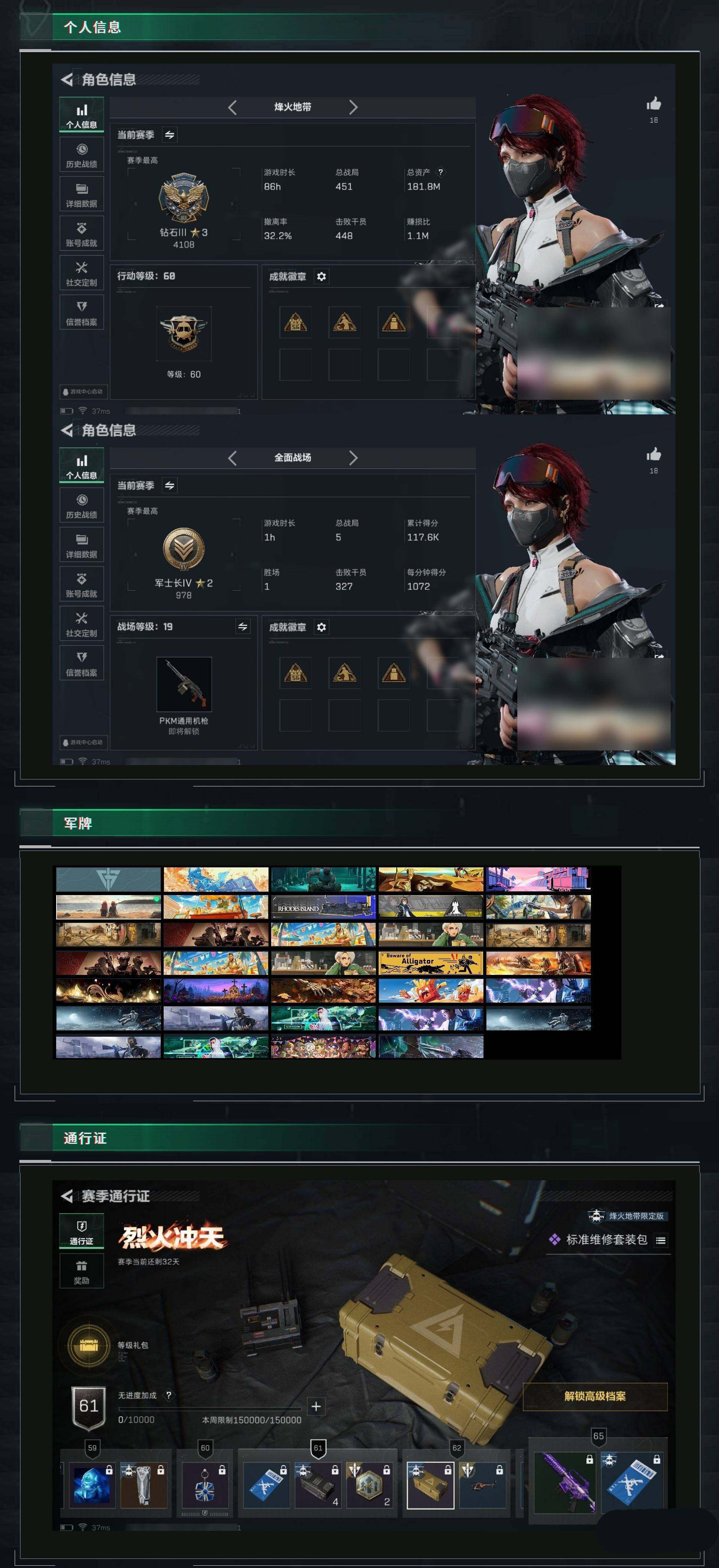 - [11515991]总资产:124.5M 11传说枪械 哈夫币:100K 进阶安全箱(9.17到期) 可二次 可修改实名 烽火地带段位:钻石 全面战场段位:无段位 传说武器皮肤:SR-25射手步枪-水墨云图,M16A4突击步枪-狩猎时刻,M4A1突击步枪-阿米娅,CAR-15突击步枪-阿米娅,复合弓-黑-天际线,Vector冲锋枪-狩猎时刻,G3战斗步枪-狩猎时刻,AWM狙击步枪-捞点薯条,腾龙突击步枪-捞点薯条,93R-捞点薯条,勇士冲锋枪-能天使-午夜邮差 史诗武器皮肤:M16A4突击步枪-竞赛选手,MP5冲锋枪-深海恐惧,SV-98狙击步枪-林中猎手,M250通用机枪-囚徒,SV-98狙击步枪-囚徒,SCAR-H战斗步枪-囚徒,QBZ95-1突击步枪-曙光,Vector冲锋枪-阿萨拉文明,S12K霰弹枪-曙光