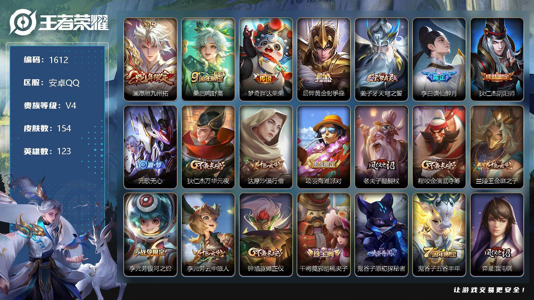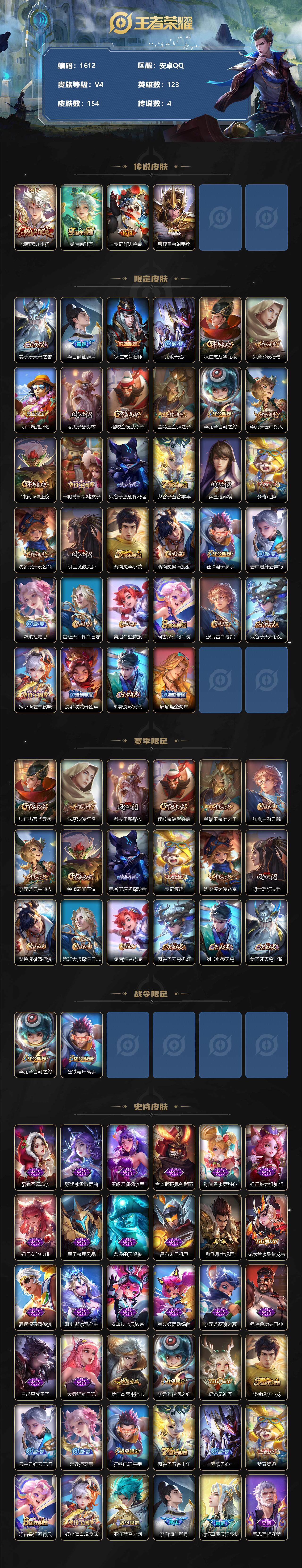 [12684499]安卓Q-V4-最强王者段位-123英雄-154皮肤-0典藏-0珍品无双-0无双-0珍品传说-4传说-38史诗
