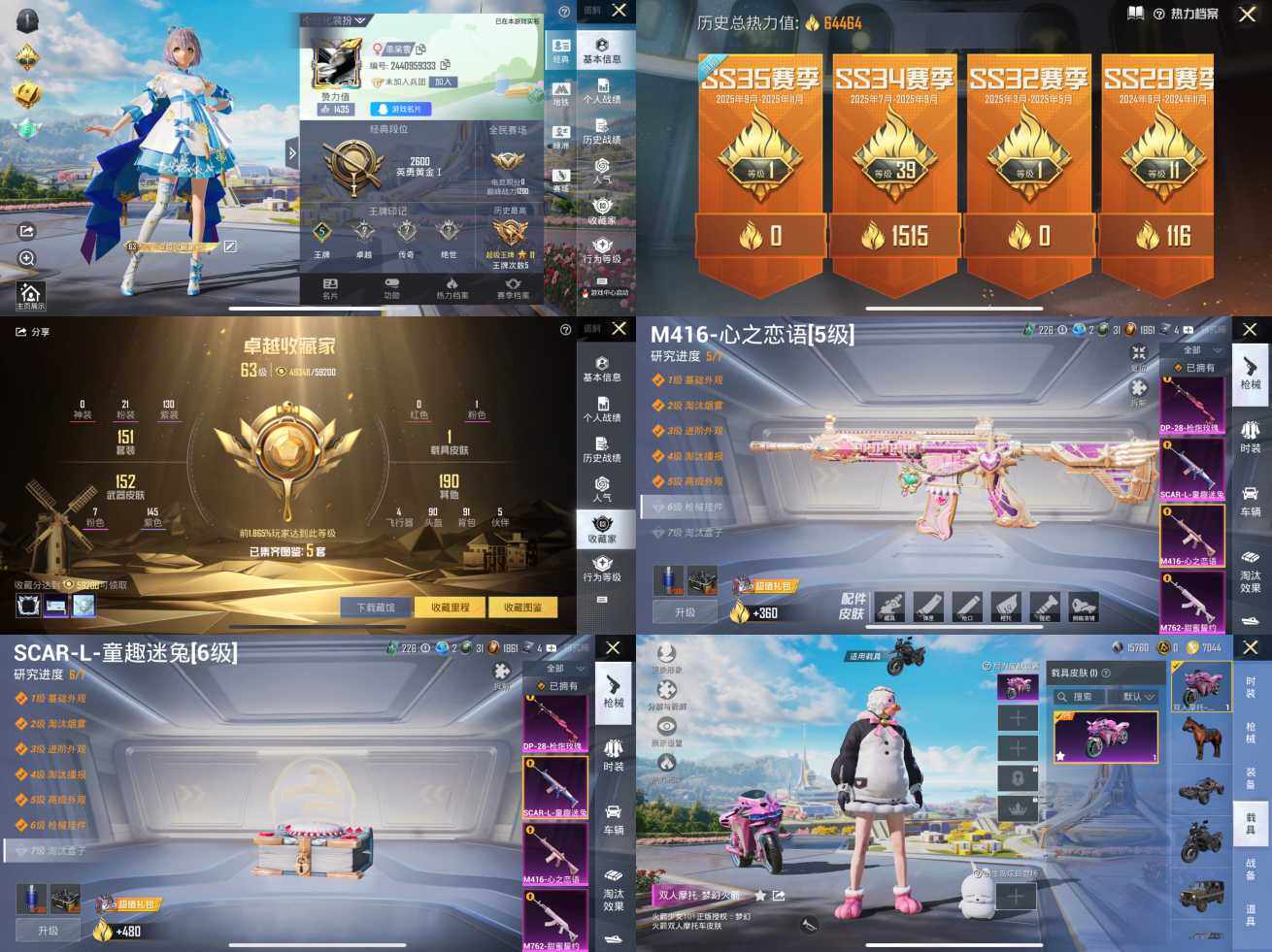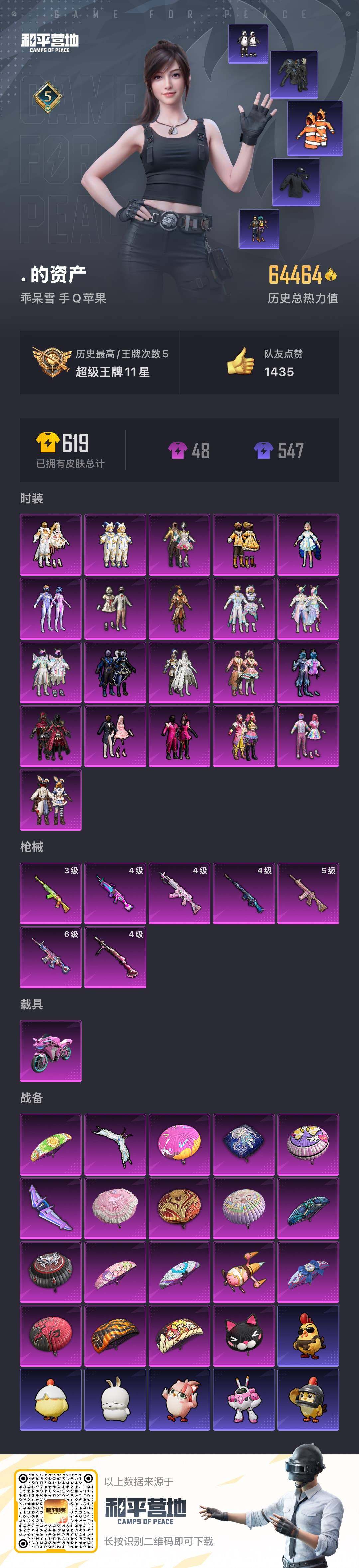 [12684714]苹果 手Q-21粉装-7特效枪-1载具-3粉色飞行器-64464热力值-5王牌印记-151套装-160枪皮