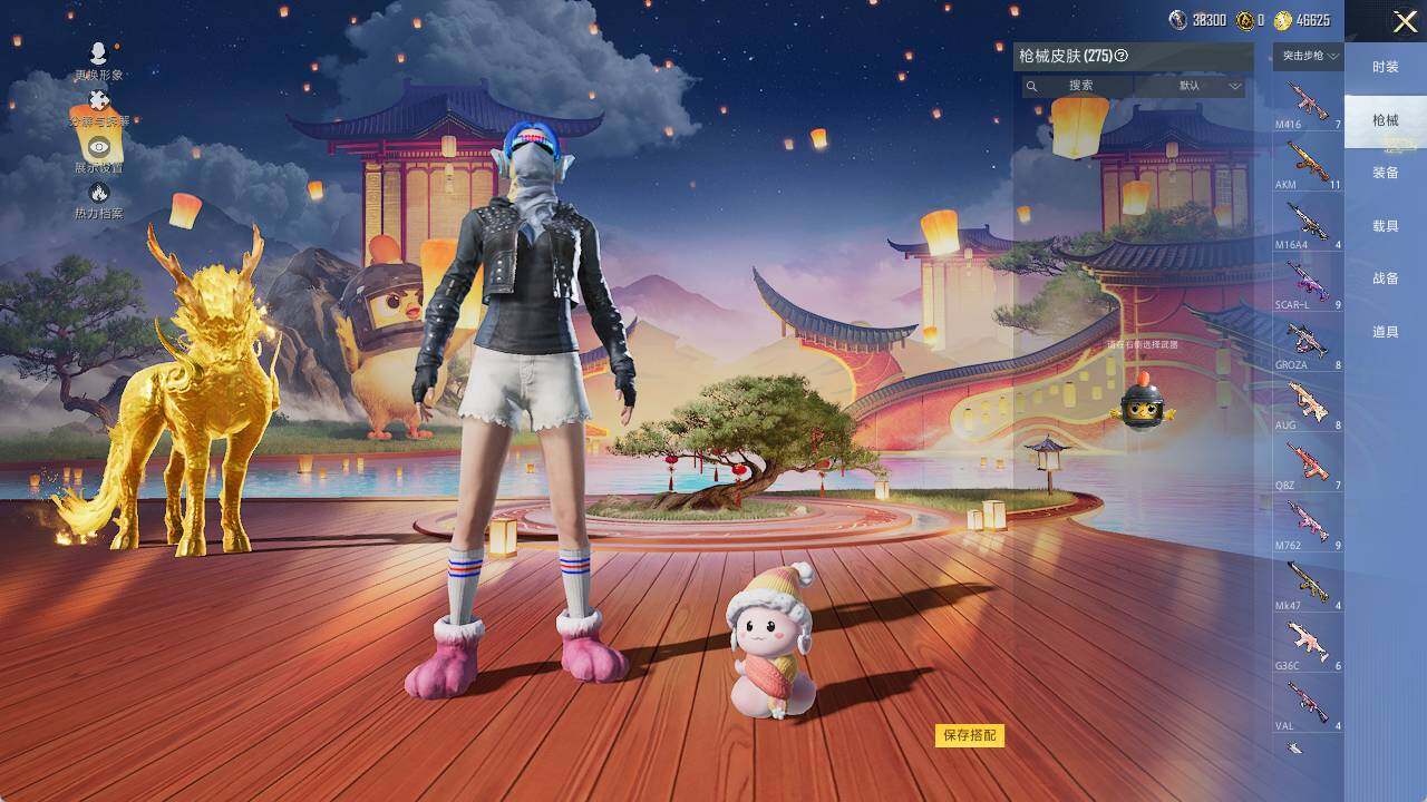 AKM-甜心宝贝,SCAR-L-机甲封神,M416-心之恋语,GROZA-镜光银凌,AUG-暖羊咩咩,M762-甜蜜誓约,UMP45-恐龙拽拽,AKS-74U-信仰神谕,P90-沙丘之主,Kar98K-巳巳如意,M24-镜域双华,M417-第五大道