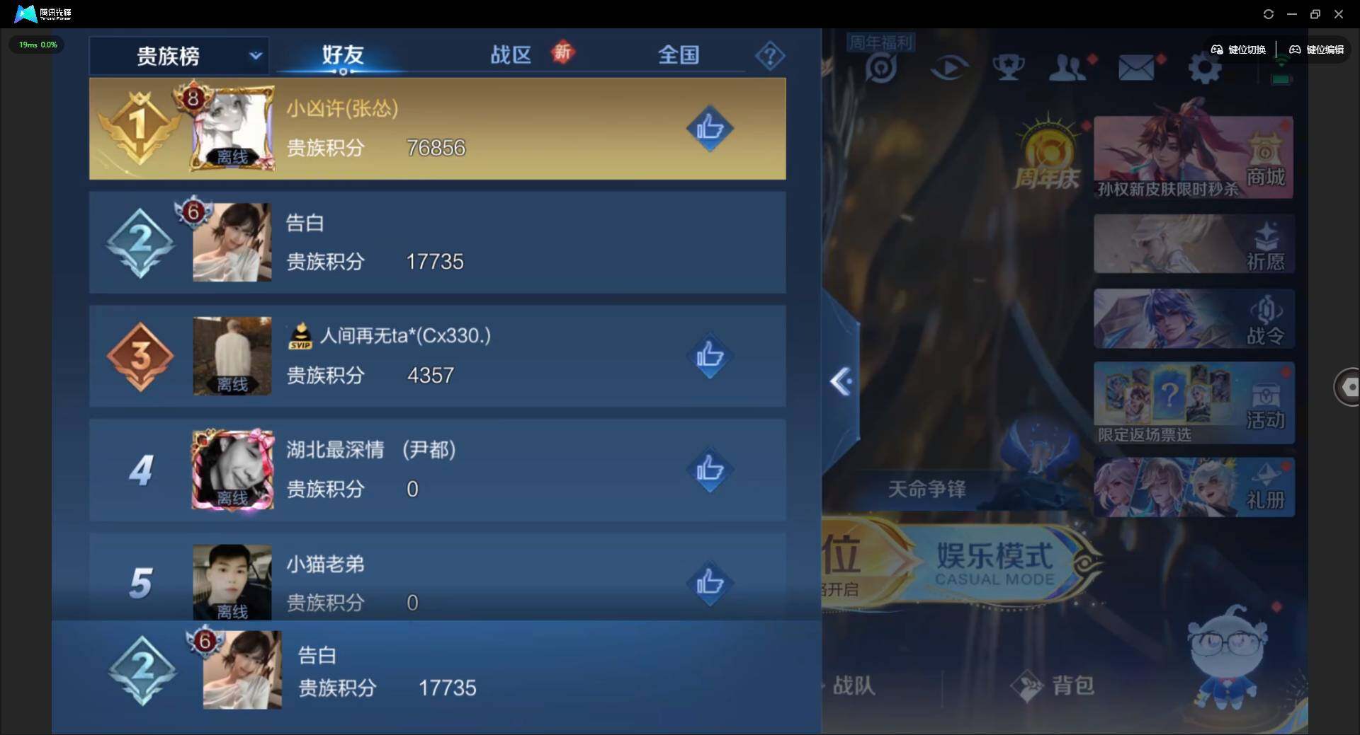 [12685050]安卓Q-V6-最强王者段位-125英雄-205皮肤-1典藏-2传说-58史诗