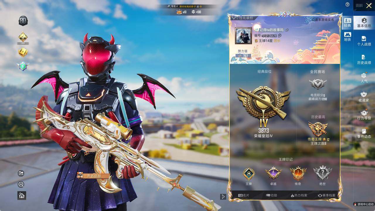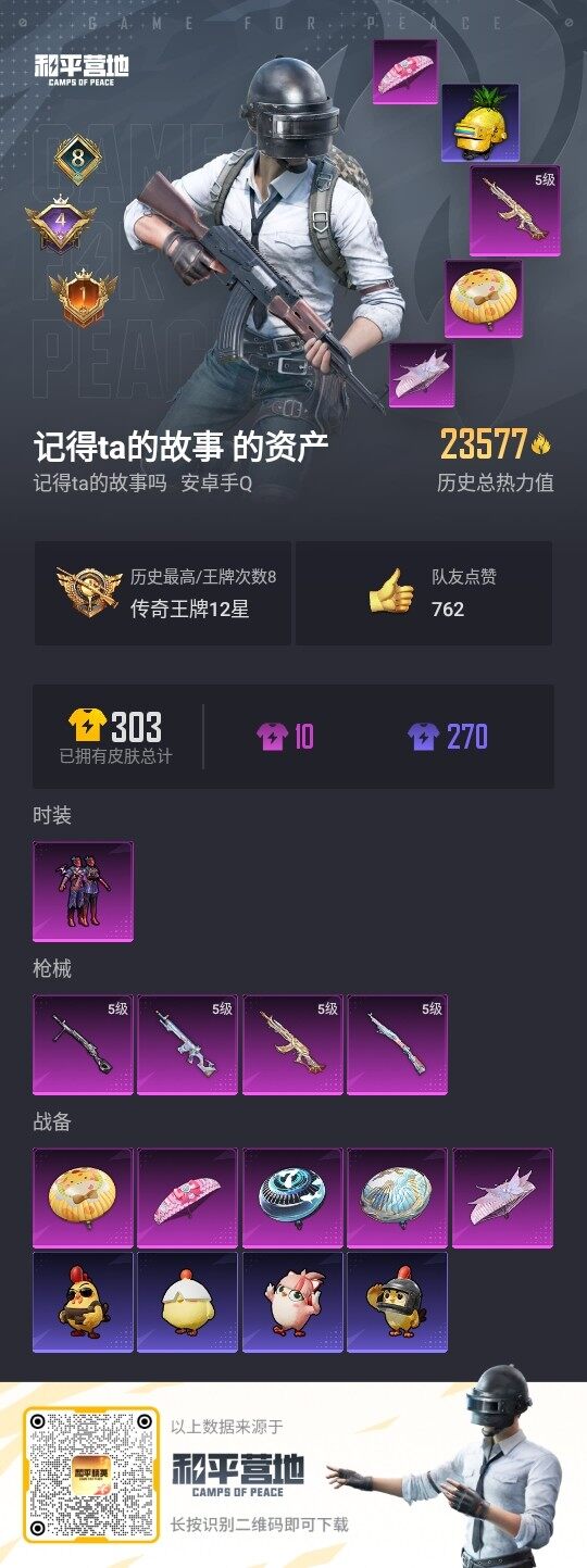 - PX_2095384- 苹果手Q-9王牌印记-6粉装-9特效枪-7载具-58727热力值-94套装-143枪皮-3卓越印记-1传奇印记 【6粉装】,梦幻火箭,宝贝奶油派,天使彩虹糖,第五大道,樱桃泡泡,吟月归客 【9特效枪】AKM-甜心宝贝-4级 SCAR-L-梦幻火箭-4级 M416-五爪金龙-6级 GROZA-焦糖拿铁-6级 Kar98K-巳巳如意-5级 P90-金丰海韵-5级 MG3-辉羽雀