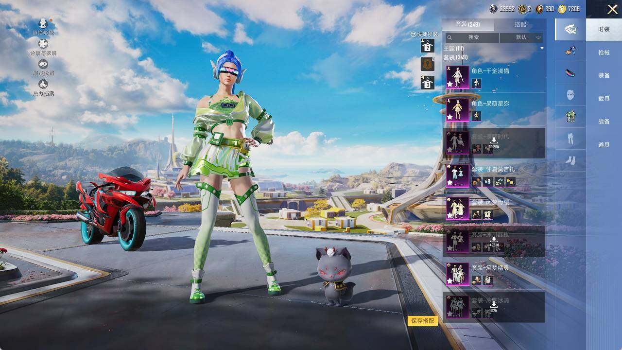 套装-浪漫天命,套装-星河浪客,套装-六号树人,套装-龟仙人,套装-暗影哥特,套装-粉红小猪,角色-Mark.06,套装-极速红龙,套装-狂沙舞者,套装-破蛋小黄鸡,套装-漫步者,套装-弄潮海豚,套装-雪山精英,套装-黑色刀锋,风华少年志套装,套装-机械英豪,套装-暗夜契约,套装-纯白誓言,套装-青龙圣者,套装-朱雀圣者,套装-影双刃,套装-静谧青瓷,抹茶蜜豆套装,薄荷蓝莓套装,套装-梦起落英,套装-瑞龙福将,套装-团圆交子,套装-豚鼠丹丹