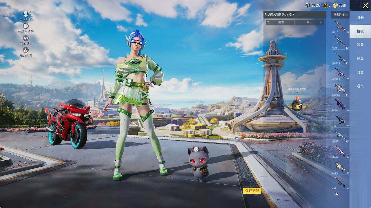 AKM-梦之光华,SCAR-L-青春物语,M416-心之恋语,M762-冷魅冰骑,P90-能量风暴,Kar98K-暗翼战神,Kar98K-巳巳如意,AWM-橘柚倾心,AMR-鸢尾晶梦