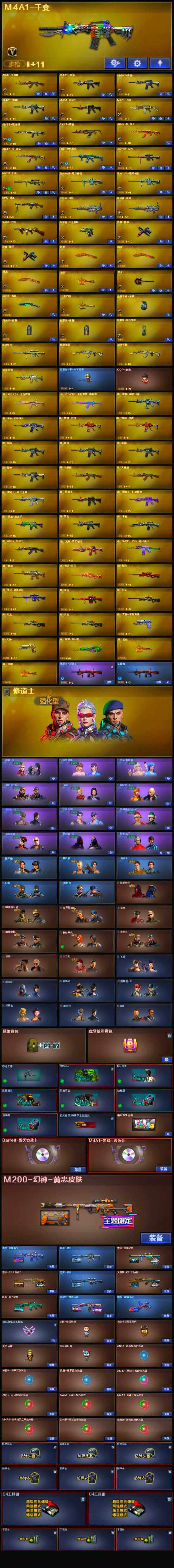 【英雄级武器】:柯尔特-电竞装甲,白虎-电玩蓝兔,M4A1-雷神*2,M4A1-黑龙,M4A1-黑骑士,M4A1-死神,RPK-盘龙,加特林-炼狱*2,汤姆逊-烈龙,AK47-火麒麟,AN94-超新星,Barrett-毁灭,M200-幻神,AK47-黑鲨,M4A1-千变,AK-47-猩红传说*5,AK47-B-战神,沙鹰-修罗*2,擎天,龙啸,屠龙*3