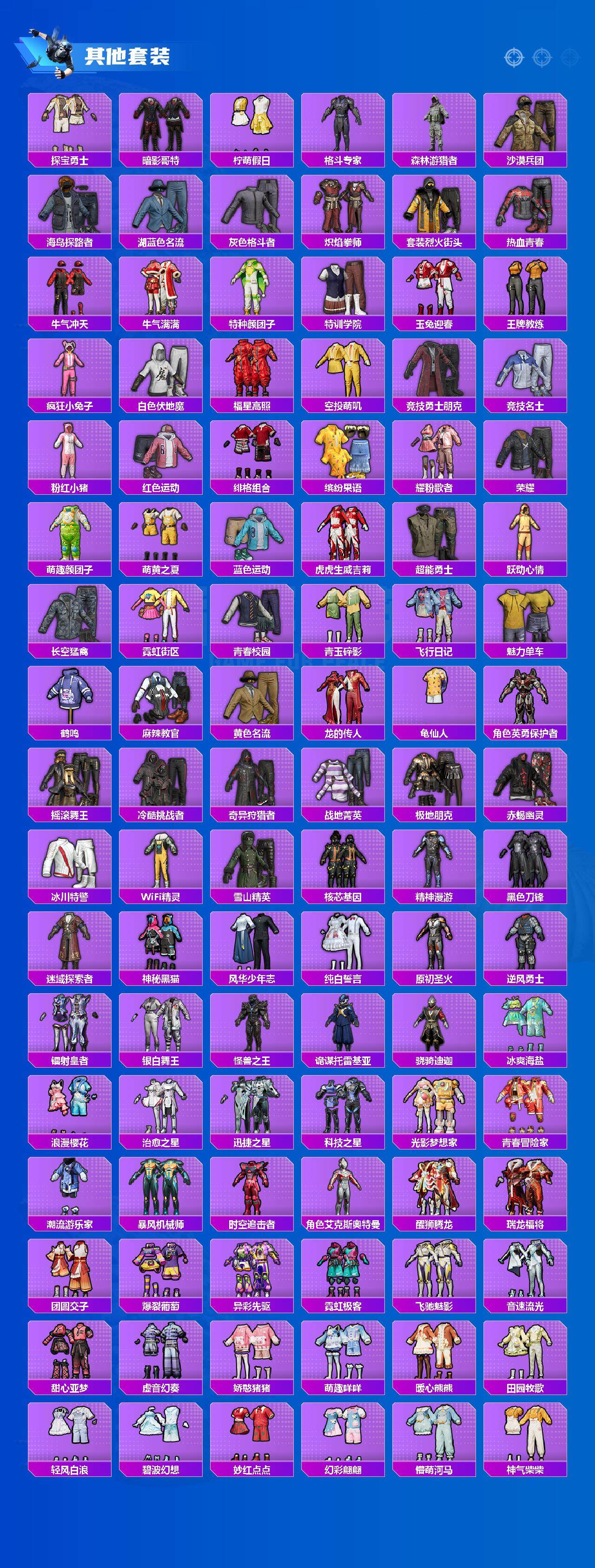 套装-龟仙人,套装-暗影哥特,套装-粉红小猪,角色-英勇保护者,套装-雪山精英,套装-黑色刀锋,风华少年志套装,套装-纯白誓言,套装-冰爽海盐,套装-醒狮腾龙,套装-瑞龙福将,套装-团圆交子