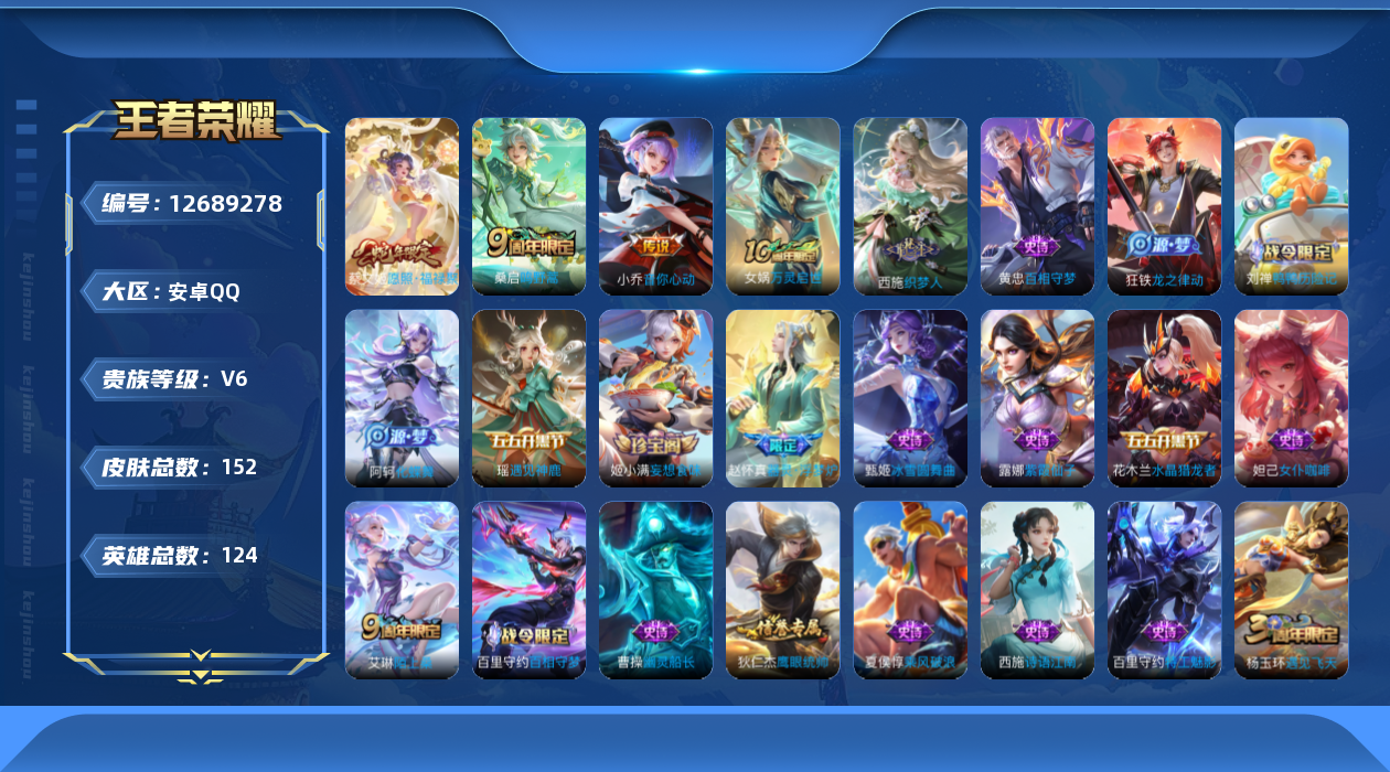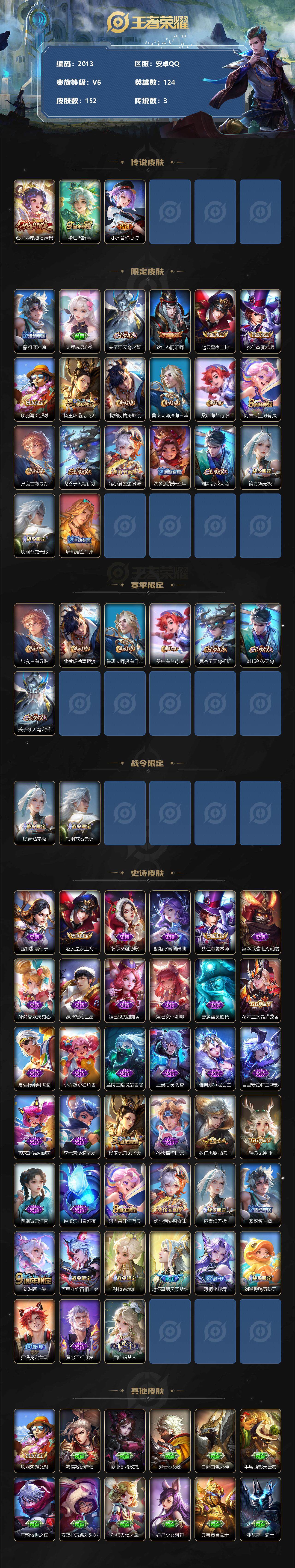 [12689278]安卓Q-V5-永恒钻石I段位-124英雄-152皮肤-0典藏-0珍品无双-0无双-0珍品传说-3传说-40史诗