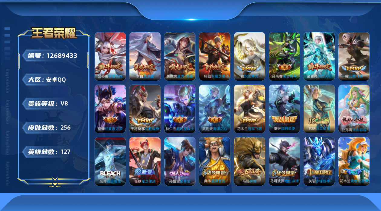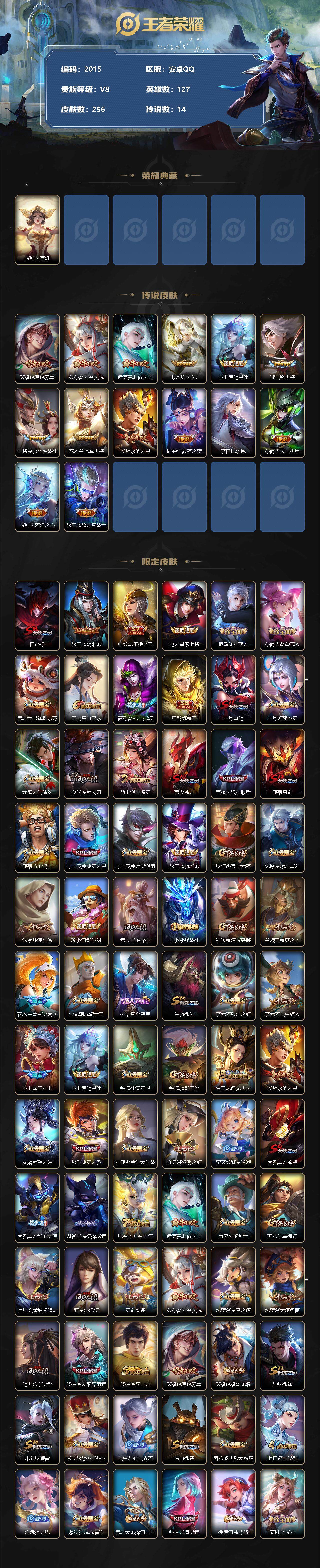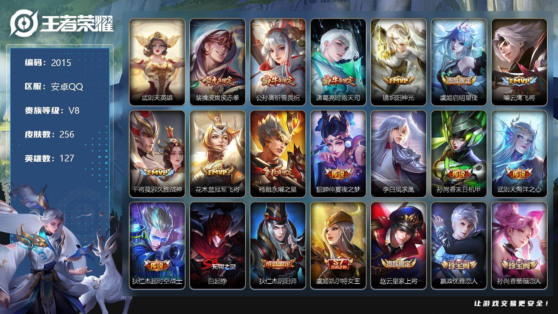 [12689433]安卓Q-V8-最强王者段位-127英雄-256皮肤-0典藏-0珍品无双-0无双-0珍品传说-14传说-79史诗