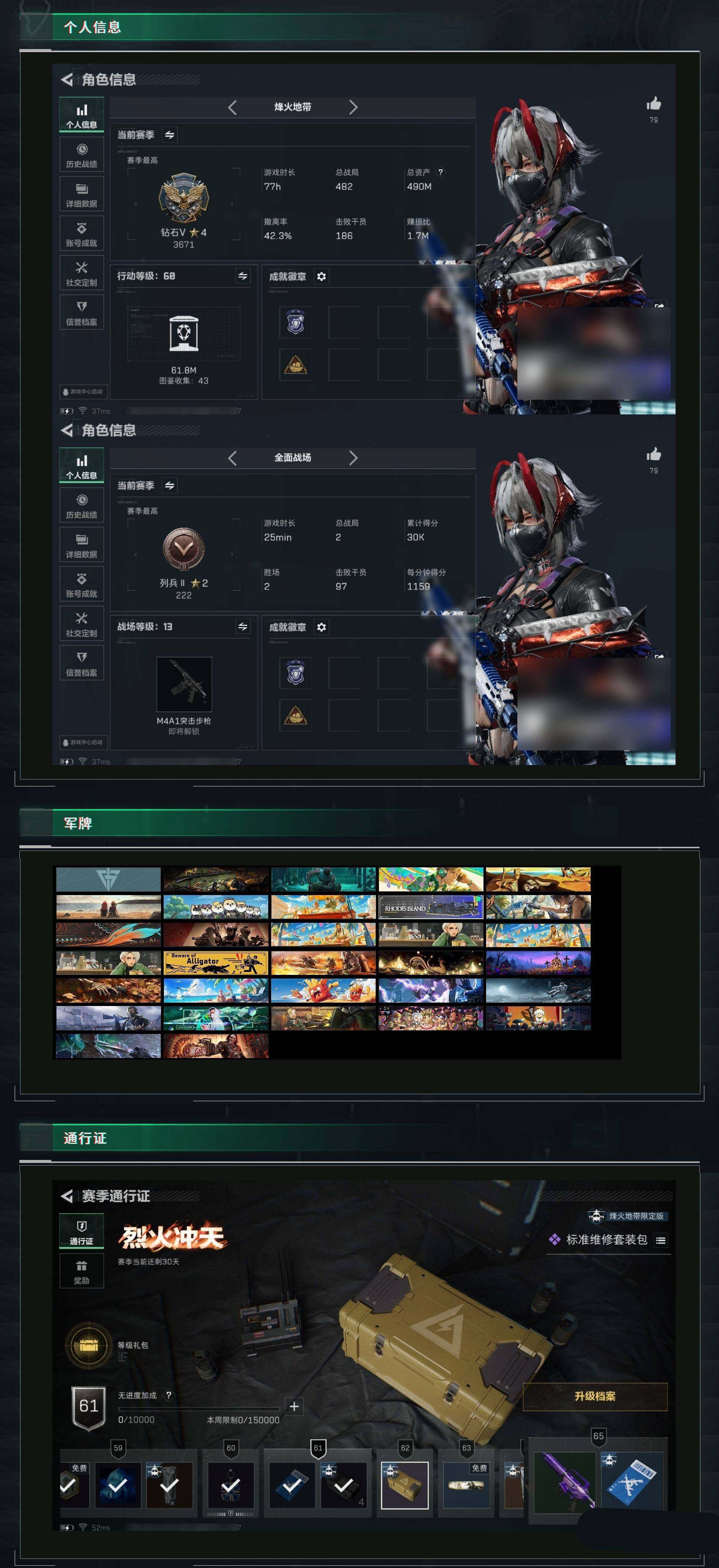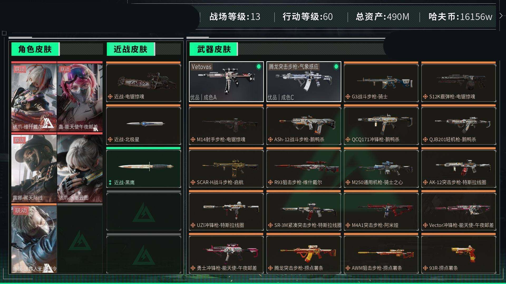 [12690469]汤31316总资产490M,哈夫币16156w,近战-电锯惊魂/近战-北极星,骇爪-维什戴尔/蛊-能天使午夜邮差/露娜-黑天际线/骇爪-水墨云图/蜂医-送葬人无题密令,K416突击步枪-命运(优品A)/腾龙突击步枪-气象感应(优品C),枪皮数量147,战场等级:13 列兵,行动等级:60 钻石,安全箱等时效性道具请以游戏内数据为准;详情请看图【个人信息】战场等级:13 列兵,行动等级:60 钻石【哈夫币】16156w【总资产】490M【货币】28三角币/31曼德尔币/20三角券【安全箱】基础安全箱2(1x2)/S6高级安全箱6(2x3)/S6顶级安全箱9(3x3)【通行证】烽火地带限定版【特勤处】制药台Lv.3/工作台Lv.3/仓库Lv.9/防具台Lv.3/训练中心Lv.6/靶场Lv.4/技术中心Lv.3/指挥中心Lv.5/潜水中心Lv.2/收藏室Lv.1【仓库】非洲之心/【角色皮肤】骇爪-维什戴尔/蛊-能天使午夜邮差/露娜-黑天际线/骇爪-水墨云图/蜂医-送葬人无题密令/【已拥有捆绑包】北极星捆绑包/捞点薯条捆绑包/特斯拉线圈捆绑包/电锯惊魂捆绑包/【近战皮肤】近战-黑鹰/近战-北极星/近战-电锯惊魂/【传说典藏】K416突击步枪-命运(优品A)/腾龙突击步枪-气象感应(优品C)/【步枪皮肤】M4A1突击步枪-蚀金玫瑰/QBZ95-1突击步枪-曙光/SCAR-H战斗步枪-水墨云图/AUG突击步枪-蝮蛇/K437突击步枪-北极星/AS Val突击步枪-典狱官/腾龙突击步枪-无垢/M16A4突击步枪-竞赛选手/SR-3M紧凑突击步枪-荒野求生/CAR-15突击步枪-阿米娅/M4A1突击步枪-阿米娅/腾龙突击步枪-捞点薯条/AK-12突击步枪-特斯拉线圈/SR-3M紧凑突击步枪-特斯拉线圈/G3战斗步枪-骑士/ASh-12战斗步枪-鹅鸭杀/SCAR-H战斗步枪-启航/SR-3M紧凑突击步枪-战术竞备/【冲锋枪皮肤】UZI冲锋枪-特斯拉线圈/QCQ171冲锋枪-北极星/MP7冲锋枪-无垢/勇士冲锋枪-能天使-午夜邮差/Vector冲锋枪-能天使-午夜邮差/P90冲锋枪-紧急戒备/Vector冲锋枪-猎鳄行动/MP7冲锋枪-守护者/勇士冲锋枪-工业狂潮/QCQ171冲锋枪-鹅鸭杀/MP5冲锋枪-战术竞备/【霰弹枪皮肤】725双管霰弹枪-送葬人-无题密令/S12K霰弹枪-电